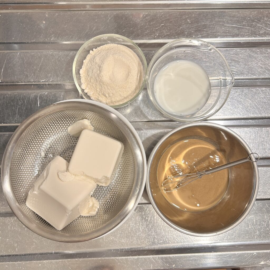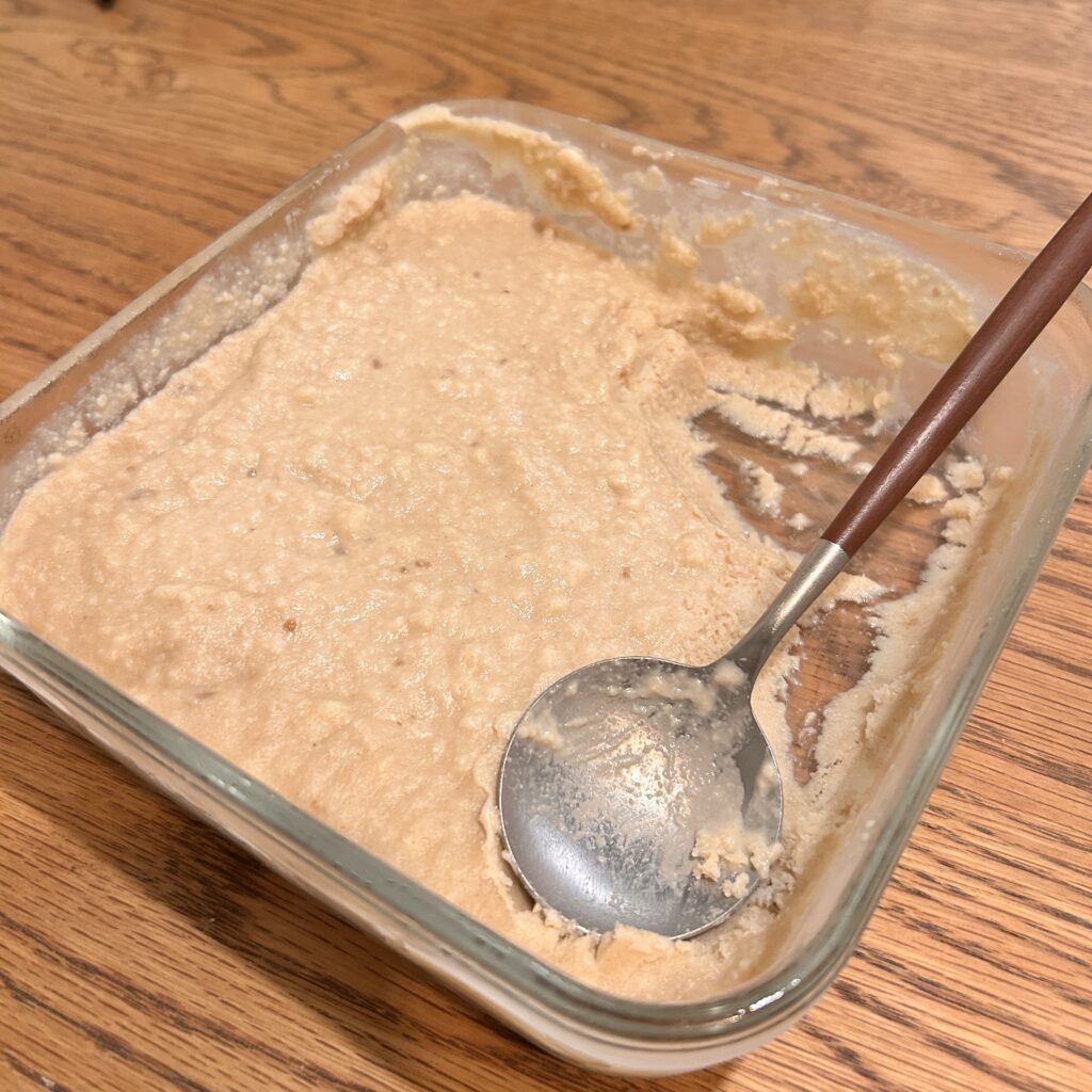 豆腐が潰れ切れておらず、粒々残っておりますが、冷やす前はこんな感じで完成!!