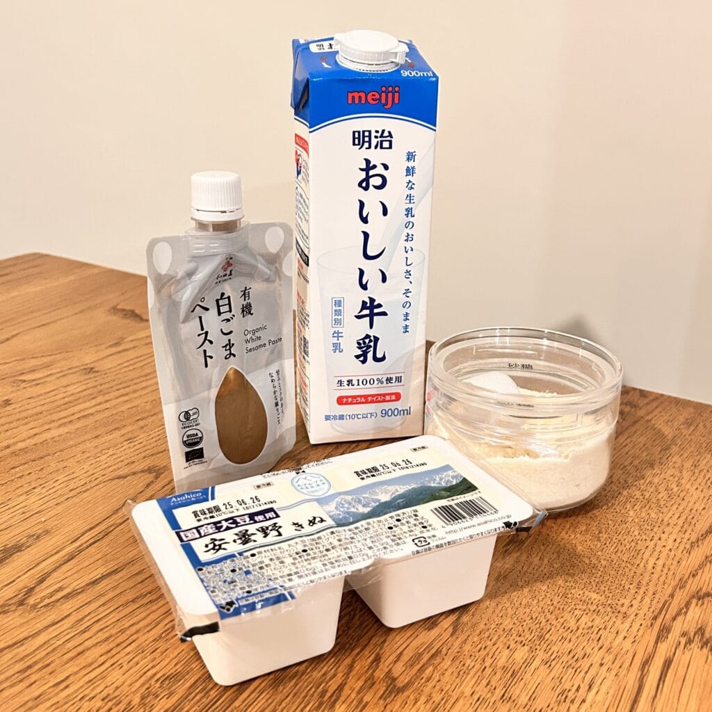 豆腐を潰して滑らかになってきたら牛乳をイン!