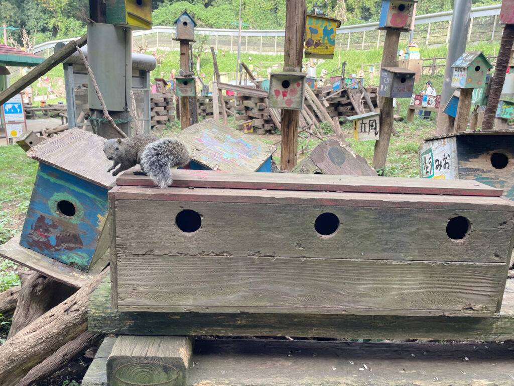 タイワンリスが放し飼い!ヒマワリの種をあげることもできる!