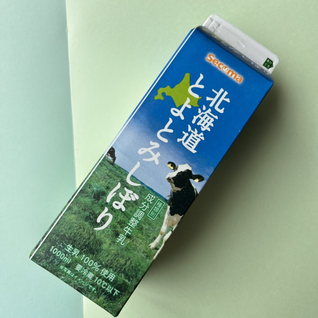 青いパッケージの「とよとみしぼり」は成分調整牛乳なので、個人的には↑の写真に写ってる「北海道牛乳」の方が成分無調整牛乳で濃厚だと思ってる。