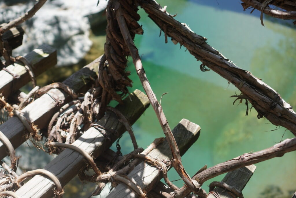 かずら橋は、厳しい冬の山野で採取された重さ約5トンにもなるシラクチカズラを編んで作られた橋のことで、国の重要有形民俗文化財に指定されています。