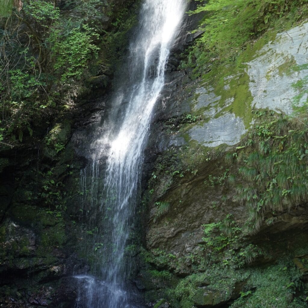 橋を渡り終わってからは、近くの滝を眺めながら涼をとったり