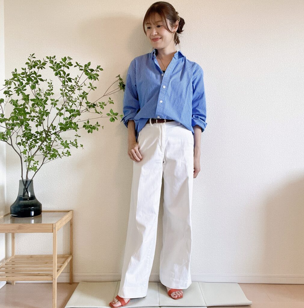 ハイウエストであしなが効果を狙いつつ 笑、センタープレスでキレイ目に履けるところがお気に入りポイントです。