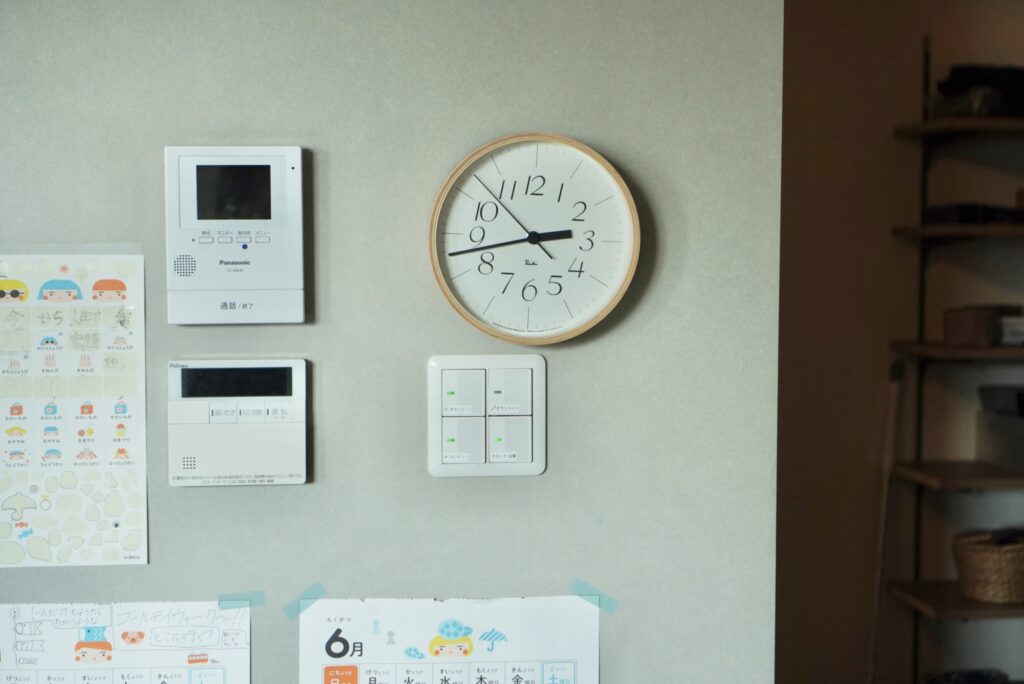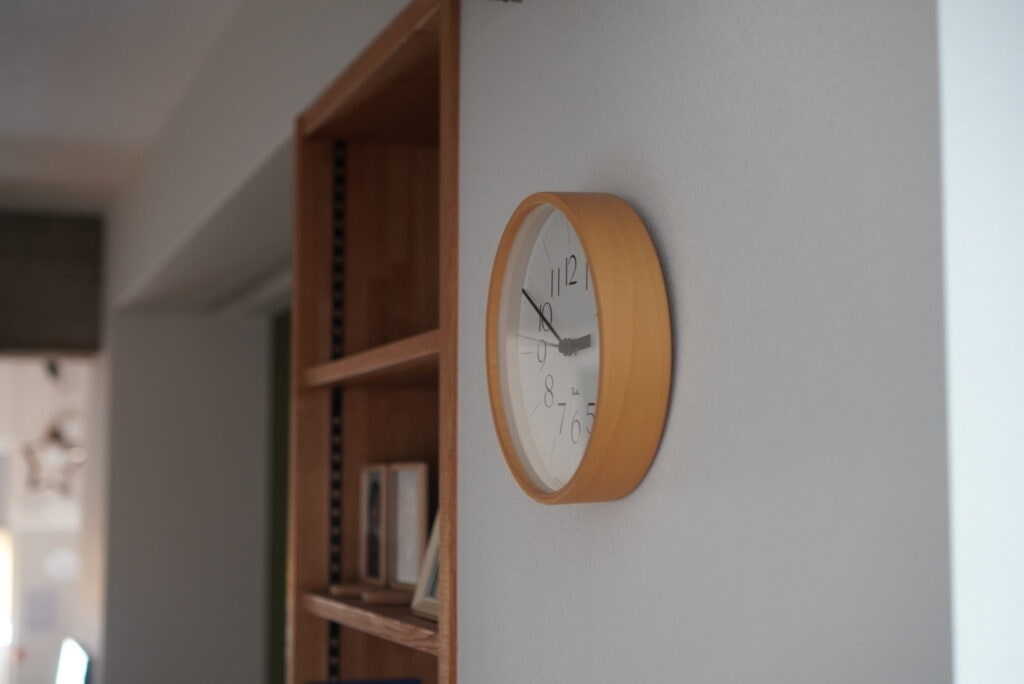 どの場所にいても時間を確認できるようにしたい、というのもあるのですが、時計があることでインテリアのアクセントになったり、空間が引き締まったりするので欠かすことができません。