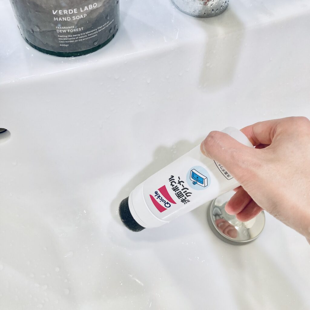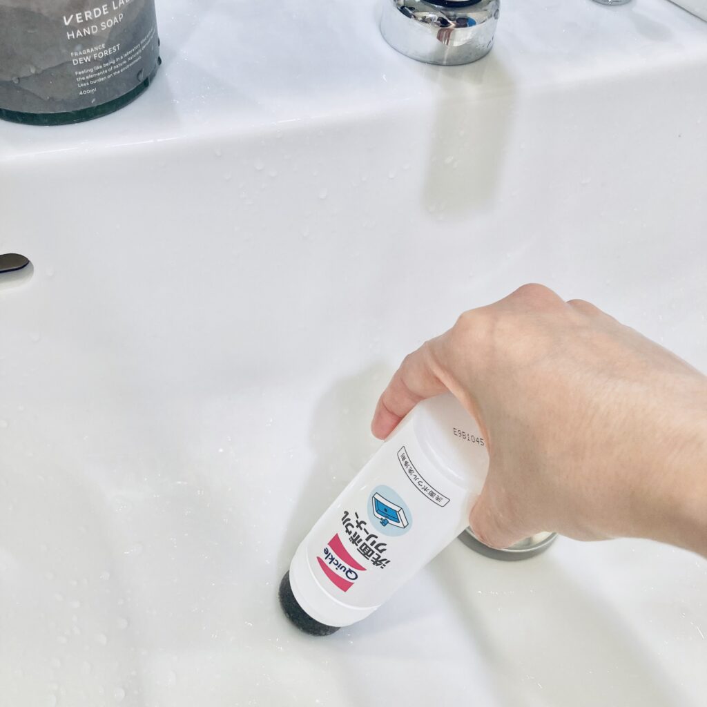 ③最後はスポンジを洗って再び洗面ボウルに先端を押し当て