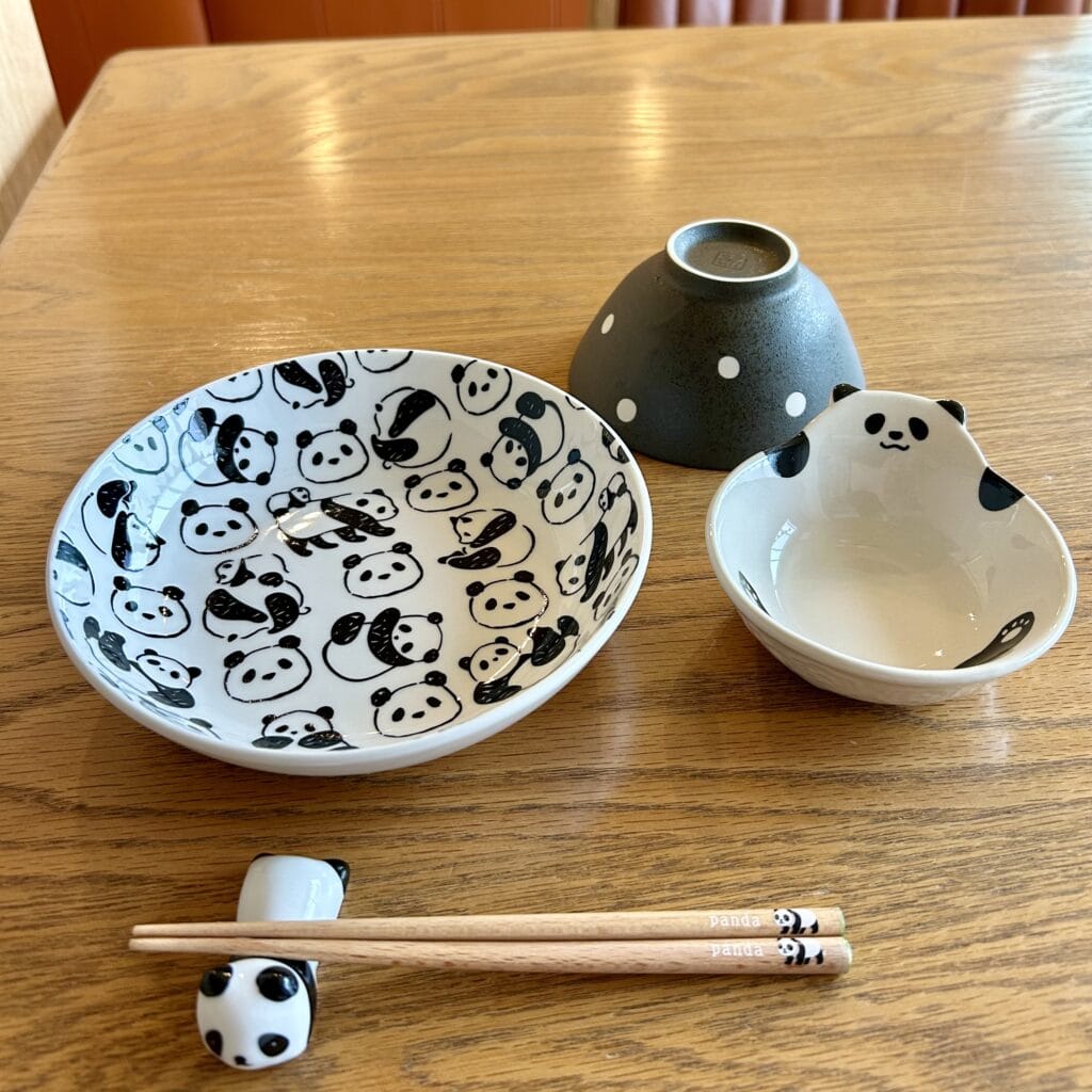箸と箸置き以外はセリアで買いました。お茶碗はパンダ柄ではないですが、白と黒がパンダっぽいので選びました。かわいいです!!(セリアで購入したのは少し前なので、、、もう売っていなかったらすみません)