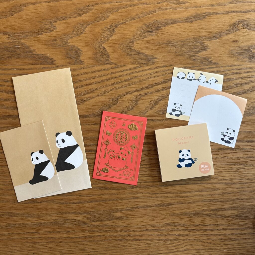 一番左が無印良品、真ん中と右はセリアです。無印良品には、パンダのTシャツもありますよね。セリアのパンダ推しは強いです。ついつい購入してしまいます。