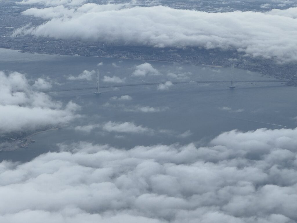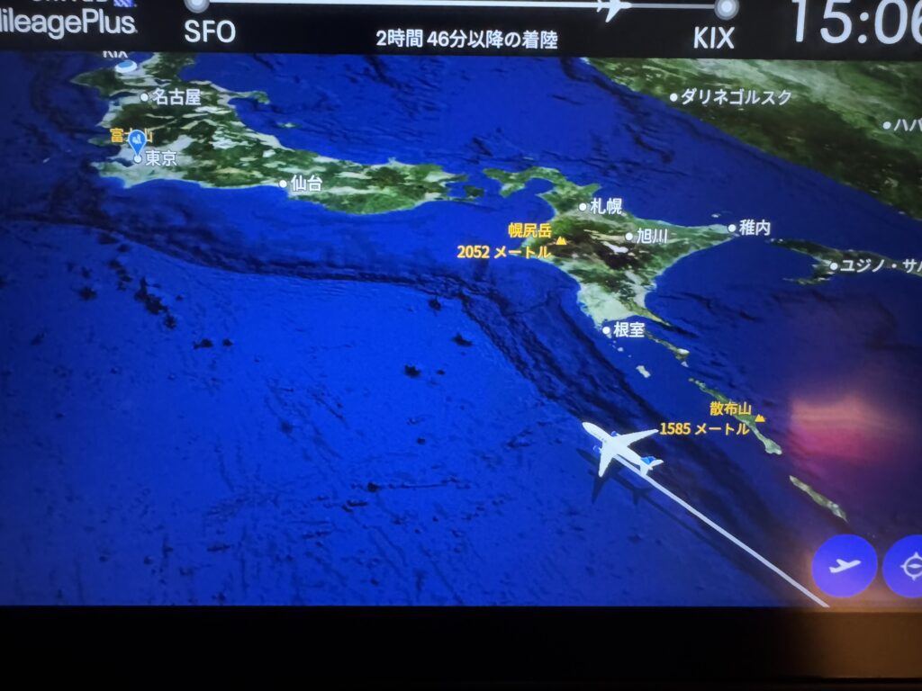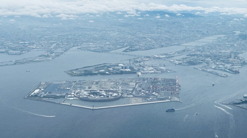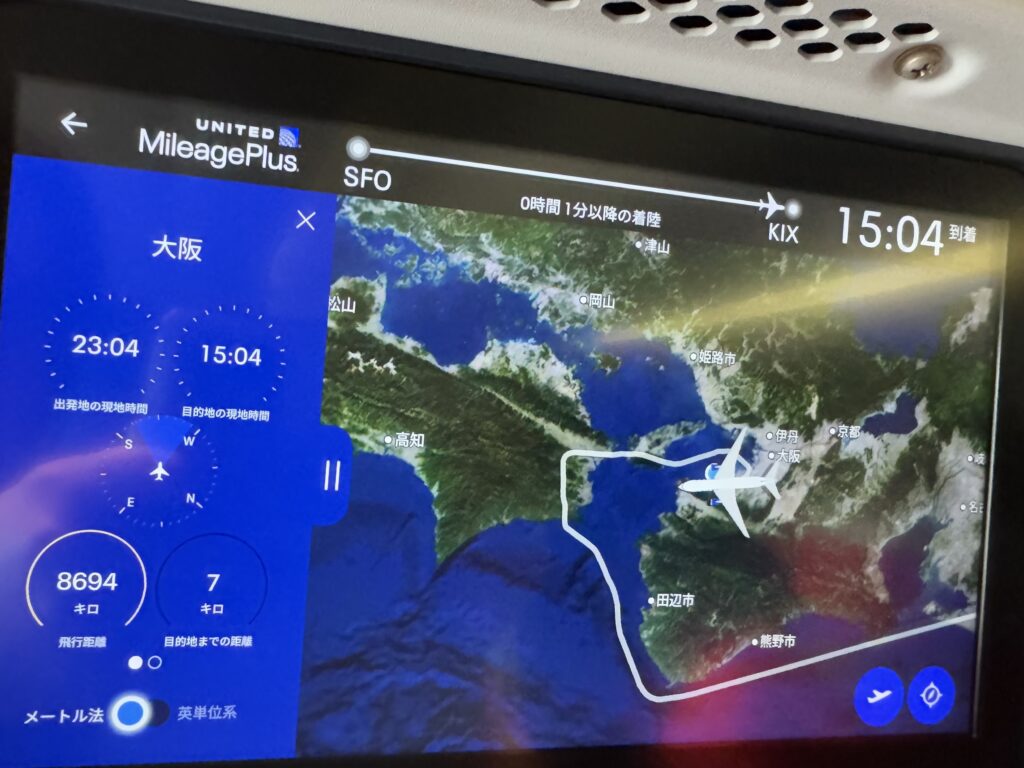 今回の帰国ではサンフランシスコから関空へ。思いがけず関空周辺で大回り飛行着陸しました。