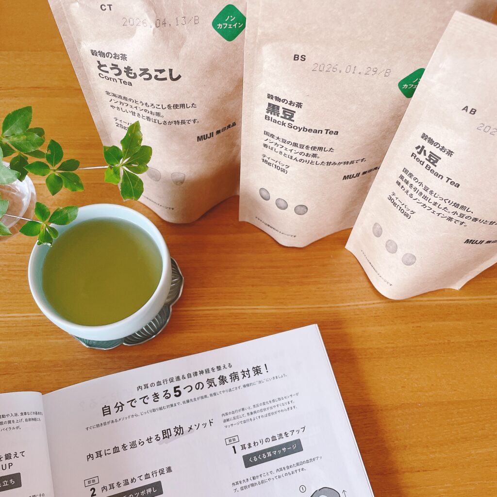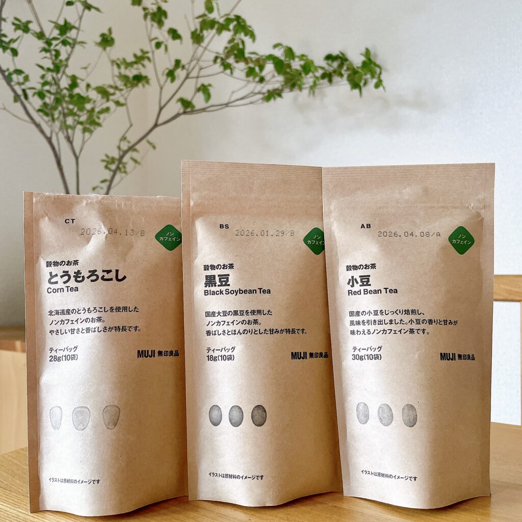 我が家は、無印良品のとうもろこし茶、黒豆茶、小豆茶を常備しています。