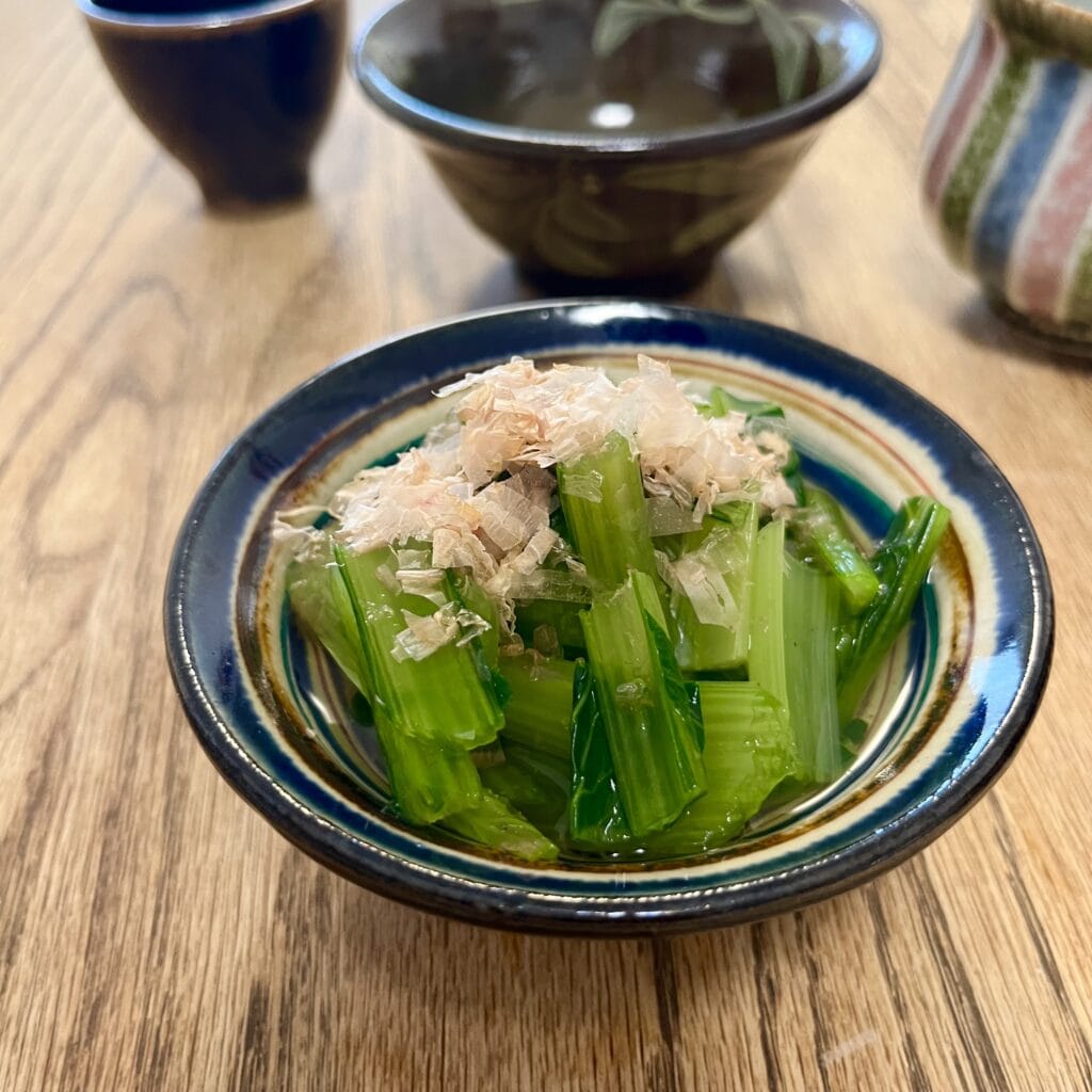 わたしも早速いろいろ作ってみたのですが、我が家でいちばん反響が大きかったのは「小松菜の塩おひたし」。