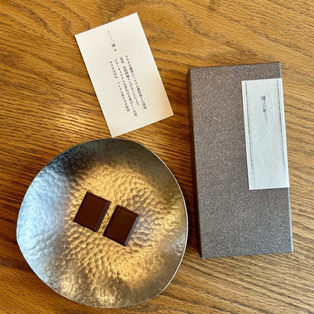 チョコレートは煉々(レンレン)と名のついた板状のものを購入しました。一見、無骨な板チョコと思うじゃないですか。チョコレートのような、ほろ苦いキャラメルのような、奥深い味わい。香りもいい。美味しいものを食べるとき、香りと味はセットなんだなって思い知らされます。そして、やっぱりあまりの美味しさに原材料を確認。笑 職人技を感じずにはいられない逸品でした。