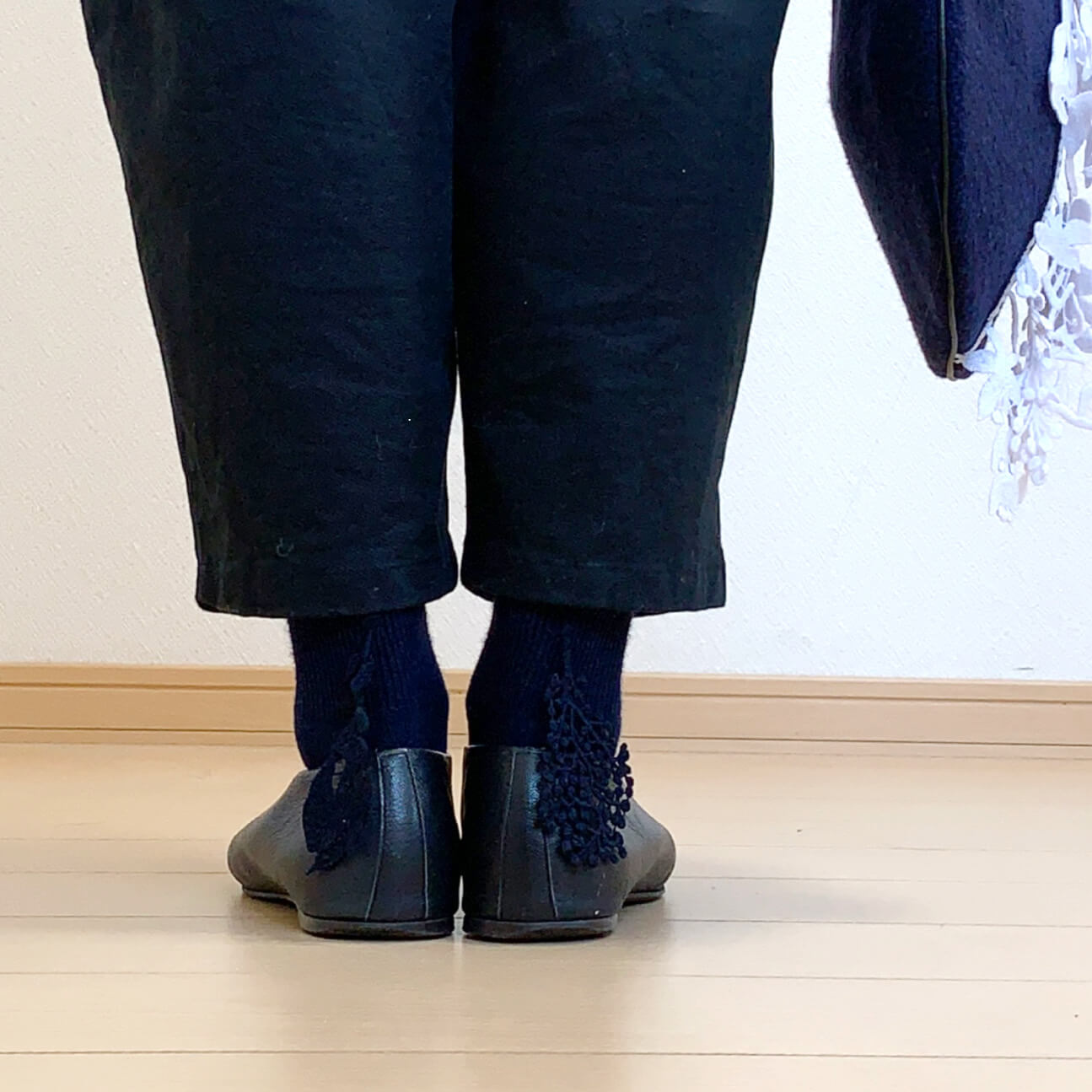 パンツと靴、スカート・ワンピースと靴の間にある靴下や脚が見える分量がめっちゃ気になるので靴下選び自分なりに実は気を付けているんです・・・