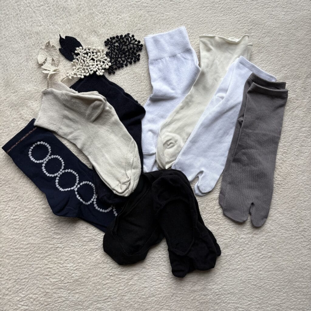 靴によっても変えるので浅履きソックスはRepettoに合わせるものや最近仲間入りした靴に合わせて足袋仕様のものも。