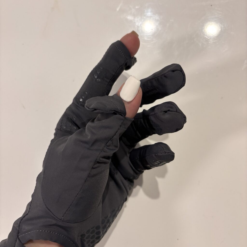 2本の指先にスマホ操作ができるスリット入り。これでとっさにスマホ触りたいときに、もたもたせず(笑)外で財布を触るときとかも、これは便利では!?