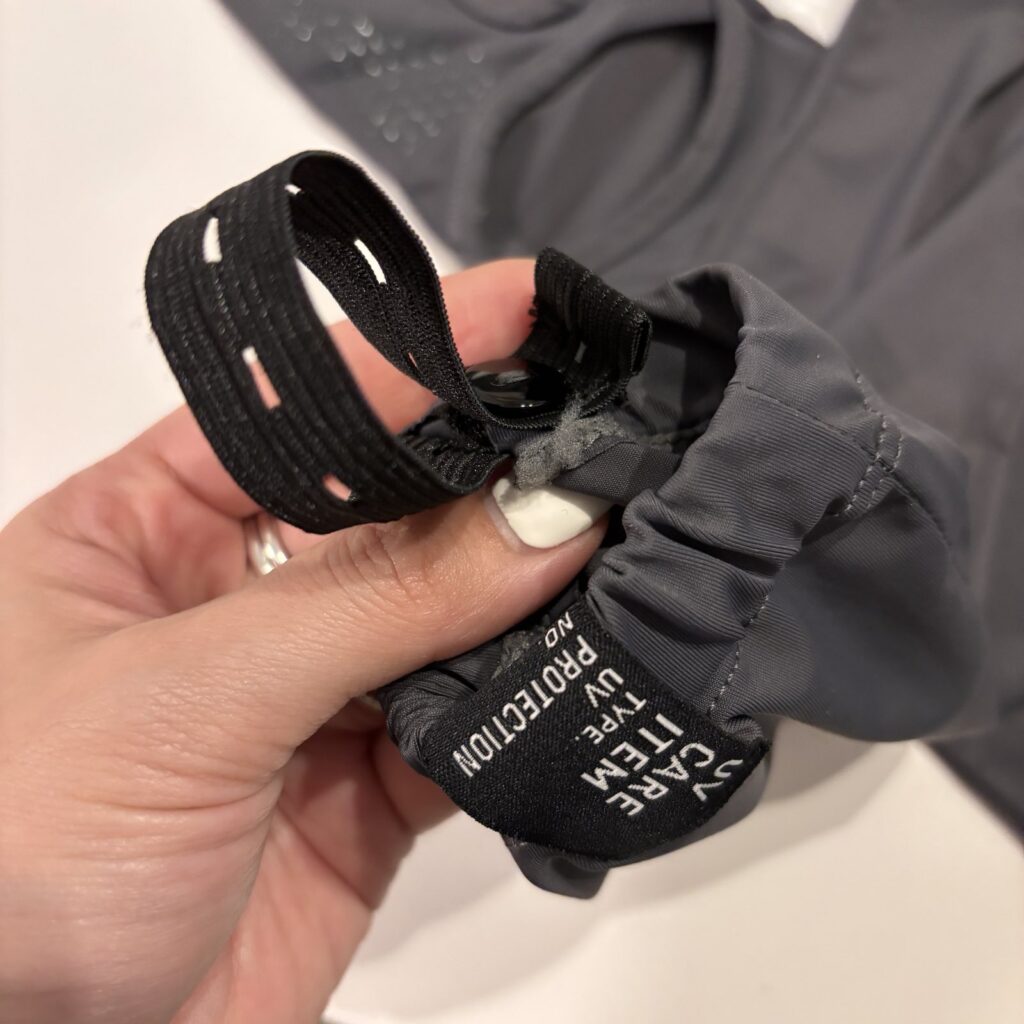 ーフリーのボトムスで多い「ボタンで調節」付!8個程のホールがついていて、ご自身の腕に合わせて調整できます。こんな手袋って、私は初めてみました。(今のスタンダード?)