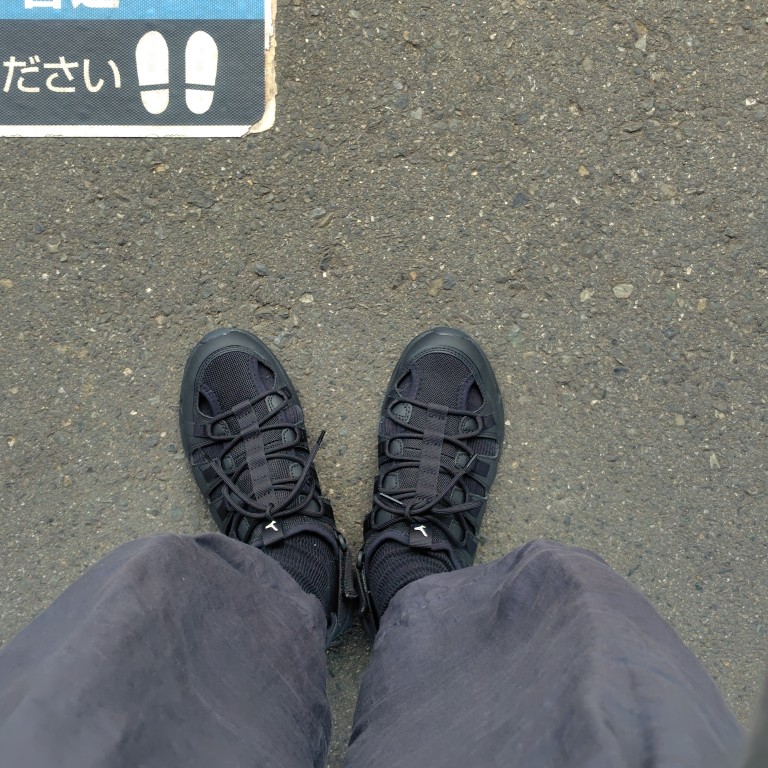私愛用の何度かブログにも登場している(GORE-TEXの左の)スニーカーのサンダルバージョンのような雰囲気。