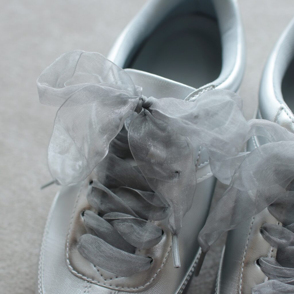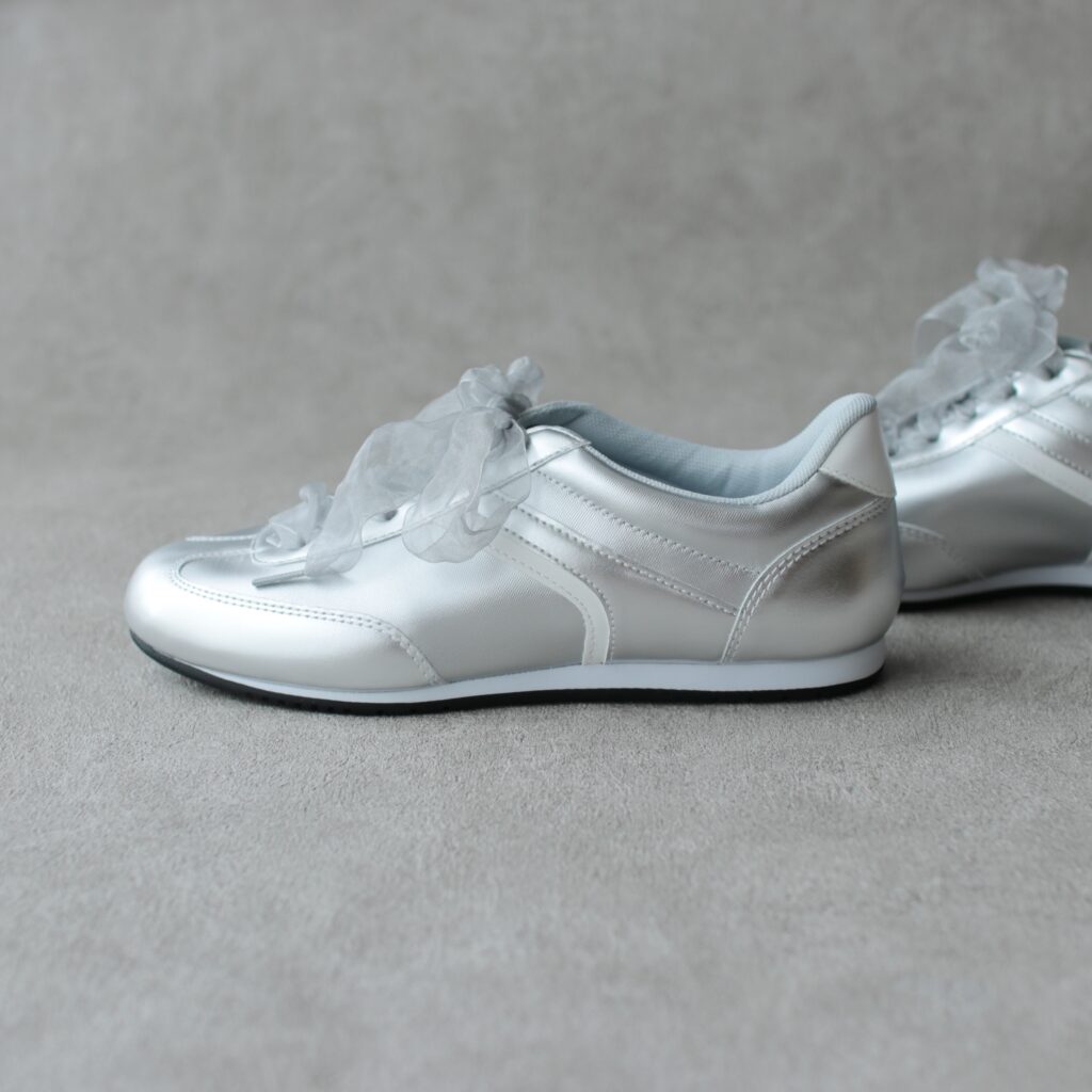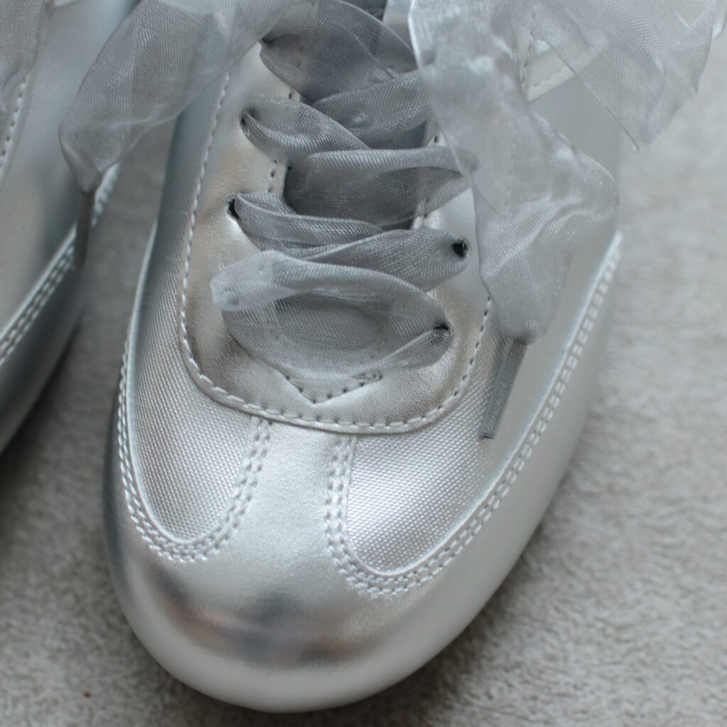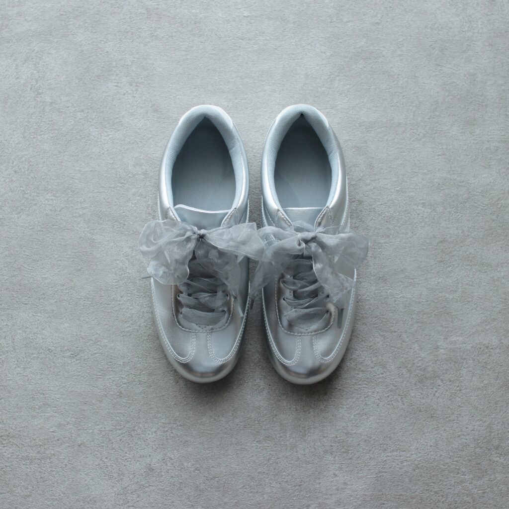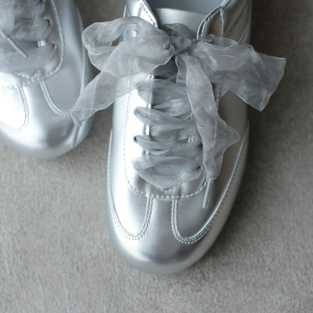 今季なのか前々からなのか、やたらとシルバーの小物に目が行くのですが、こちらを見つけたときに、シューレースがリボンだと…!?とその珍しさに一目で惹かれました。