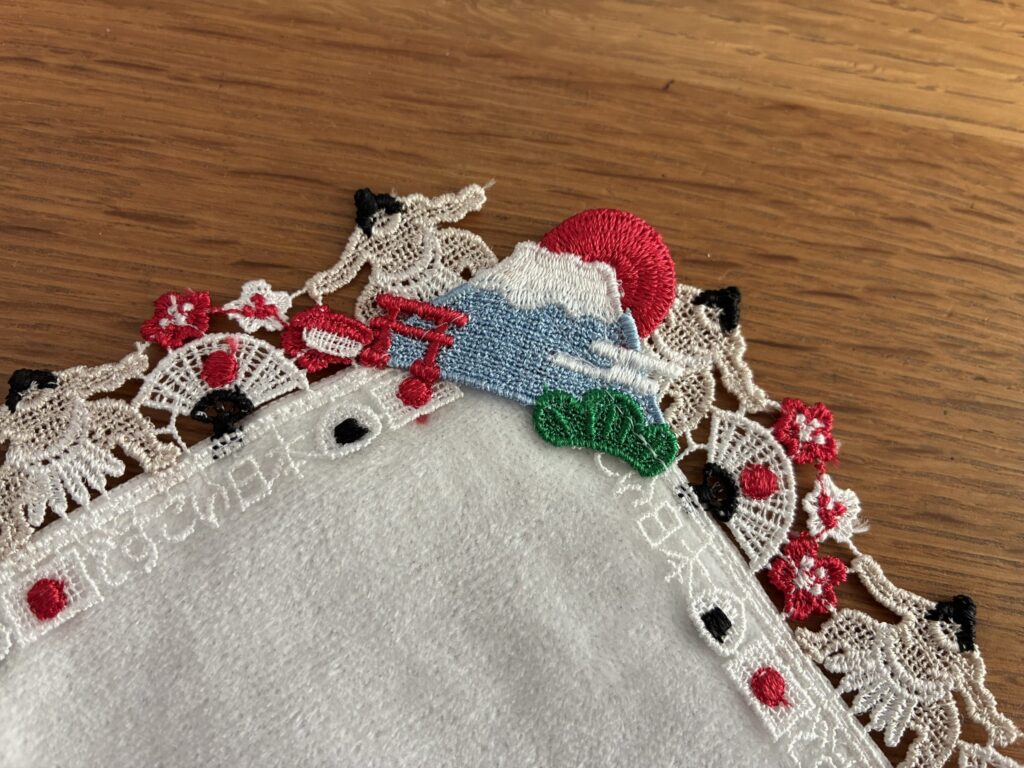 お相撲さんがレースの縁をぐるりと囲む、なんともユニークで愛嬌抜群のデザイン♡