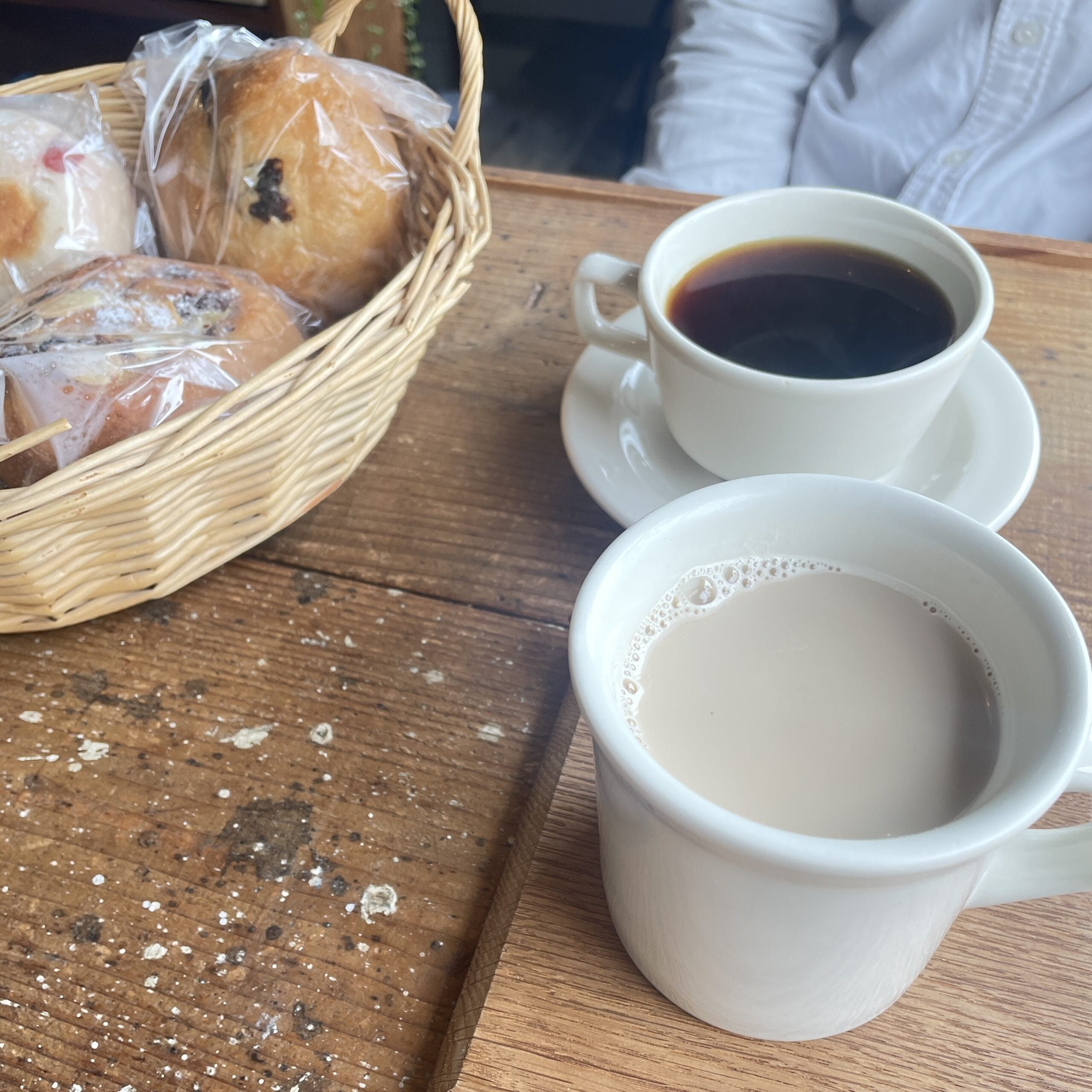 カフェはワンドリンク制で、夫はコーヒー、私はカフェオレを注文しました。
