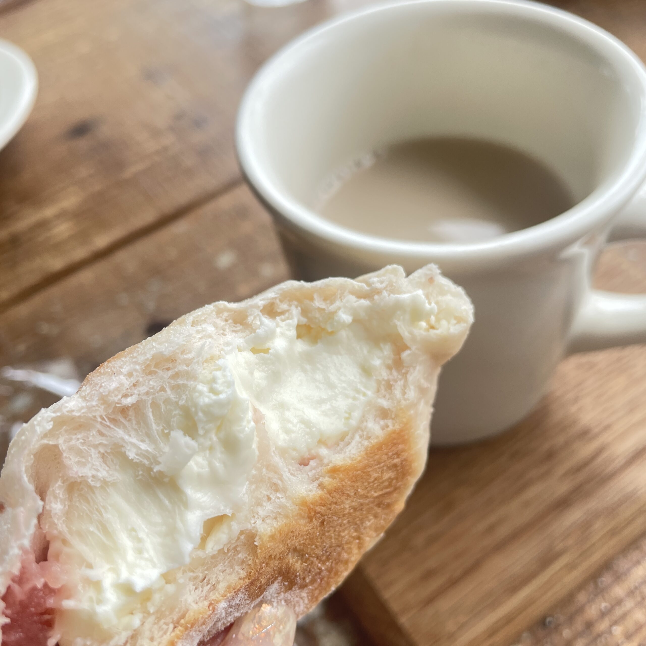 中身がみっしり入ったクリームチーズとイチゴのパン。