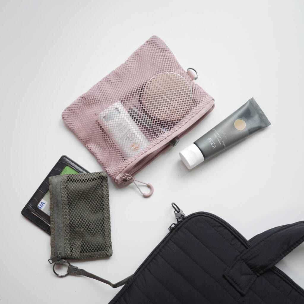 こちらも、メッシュ面と分かれて両面使えるので、小銭入れやカードケースに使えます!