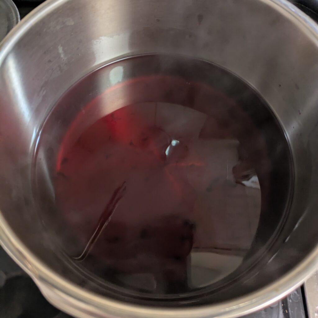 色が出たら葉を取り出し、砂糖を加えて溶かします。