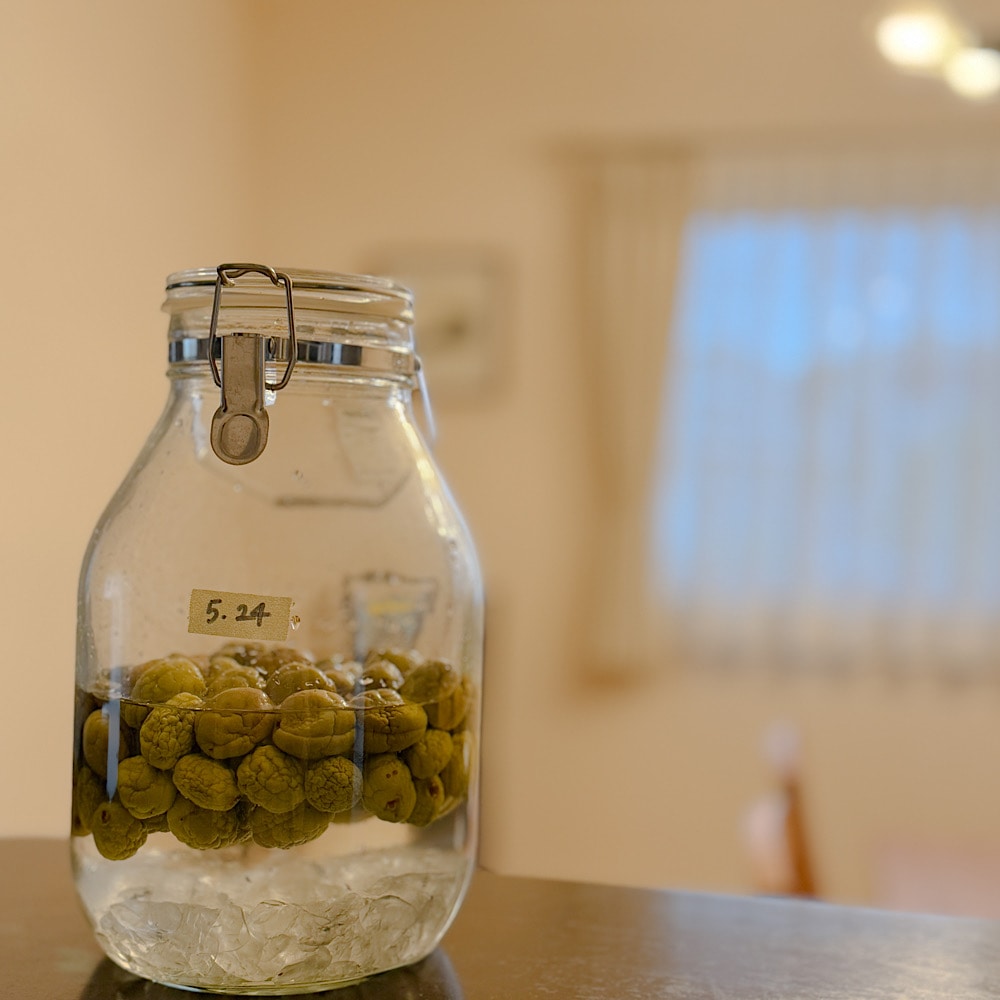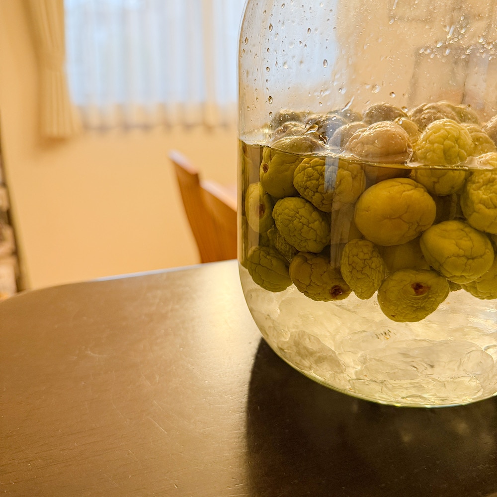 日に日に梅はしわしわになり、角砂糖はゆっくりと溶けていく。