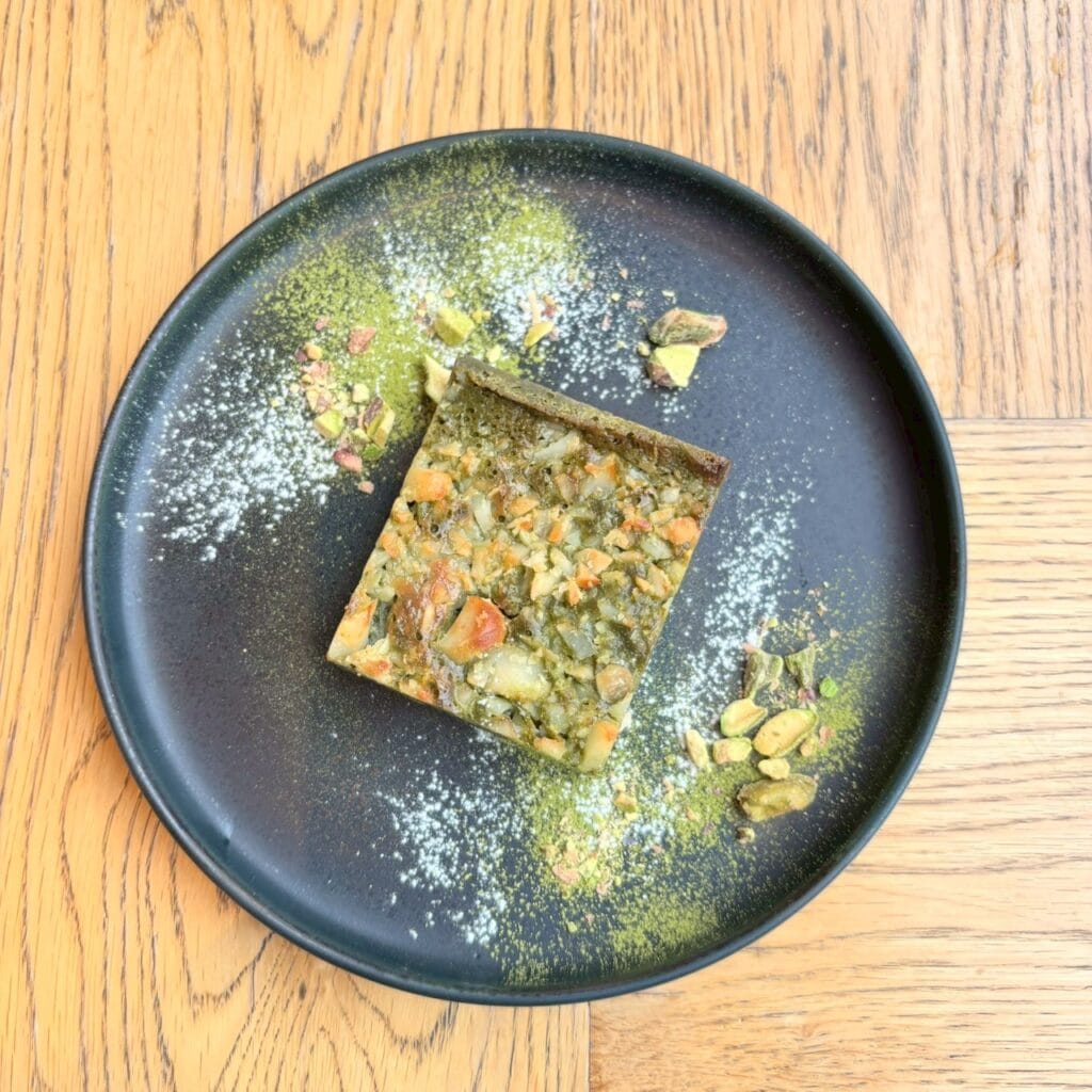 ピスタチオやマカダミアナッツなど、数種類のナッツが使われていて、ナッツ好きにはたまらない濃厚デザートでした😋
