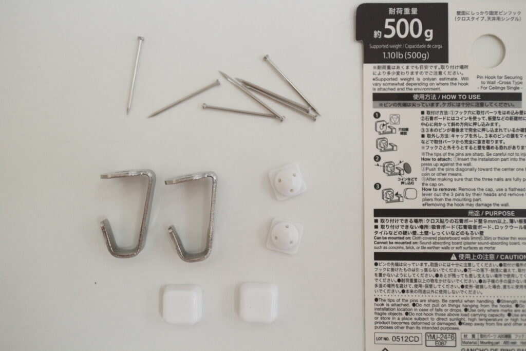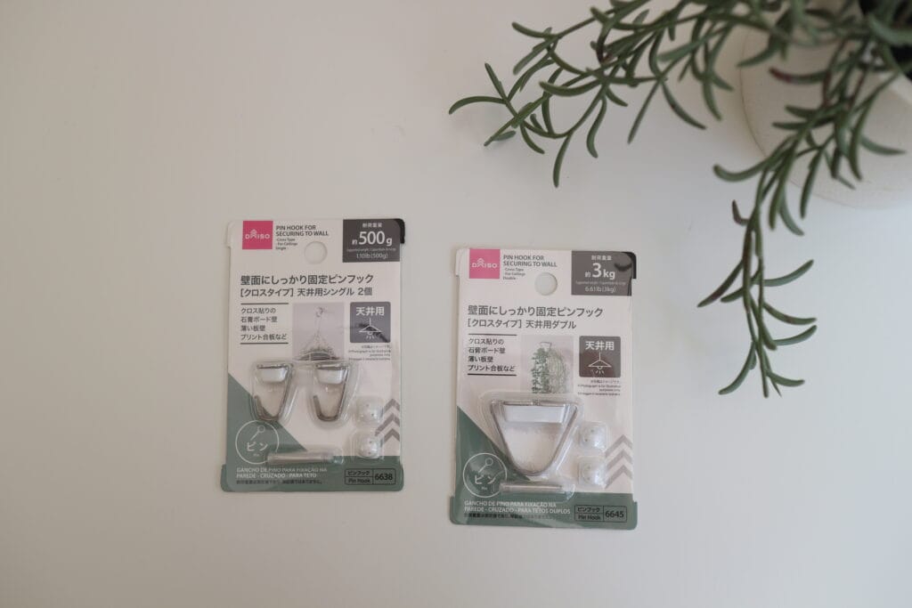 ネットで天井用のフックを注文しようとしていたのですが、なにやらダイソーにもあるらしいことを聞いたので、探してきました。