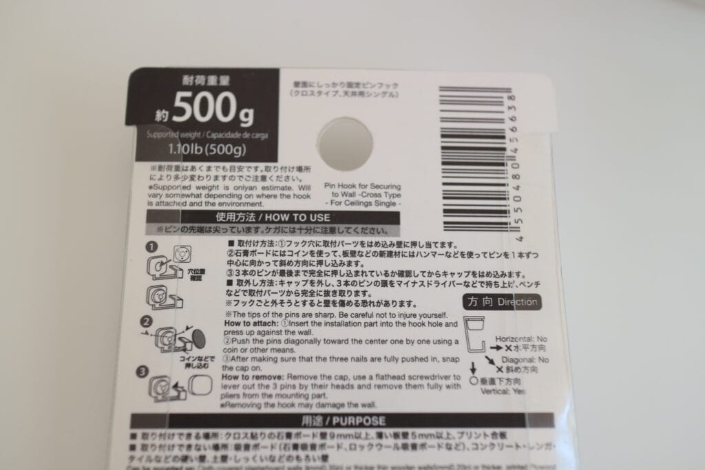 取り付け方法はとっても簡単なのですが、ピンを1本ずつ斜め方向に押し込むのが天井だった為、脚立に立ちながらやっていたらなかなか力が入らず(脚立から落ちそうで怖い~)難しかったです。