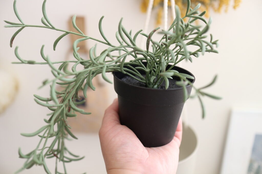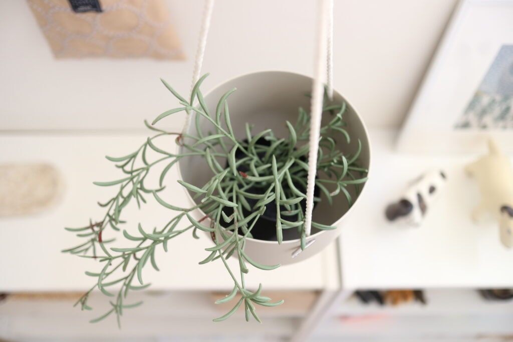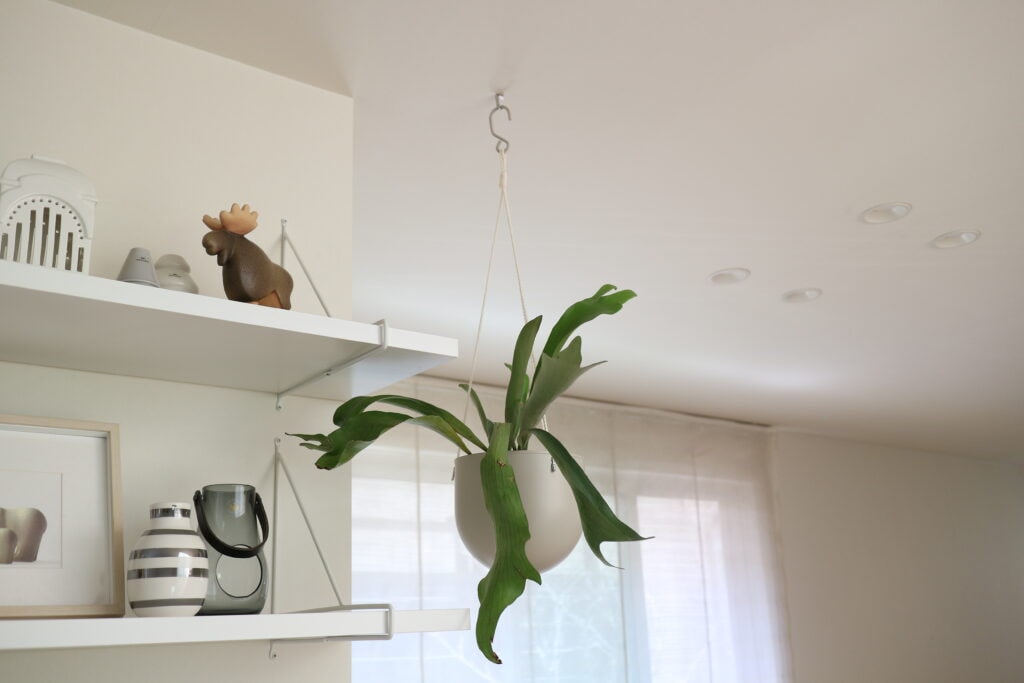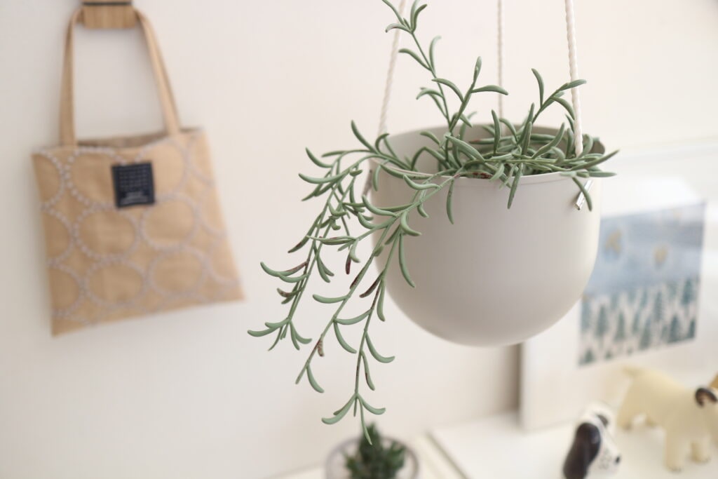高い位置にあると、お水をあげたり植物の状態を見たりするのが大変ですが、フェイクなのでその心配もなく、吊るすのにピッタリでした!