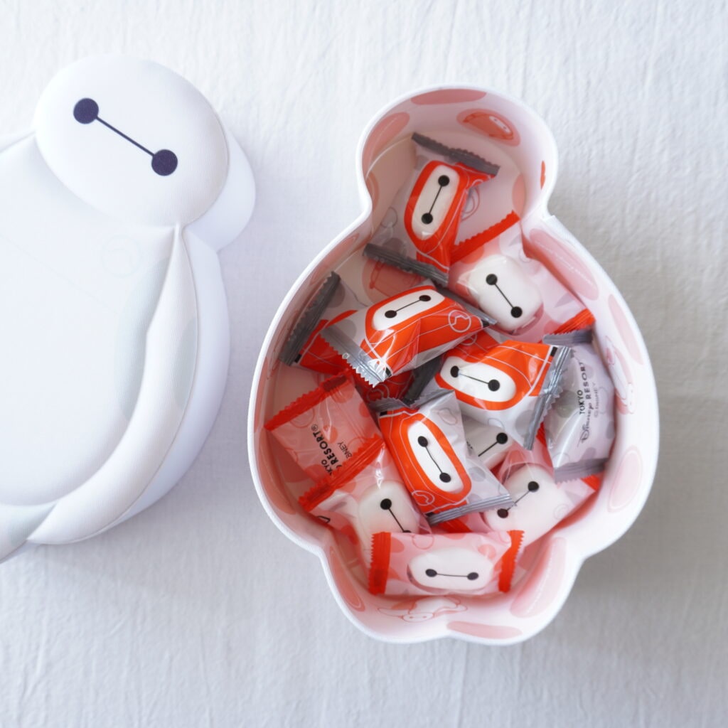 このベイマックスは、お菓子の箱なんだけどお腹がふわふわしているんです。めちゃくちゃ可愛いですよ。箱の中にはチョコクリーム入りのマシュマロが!!