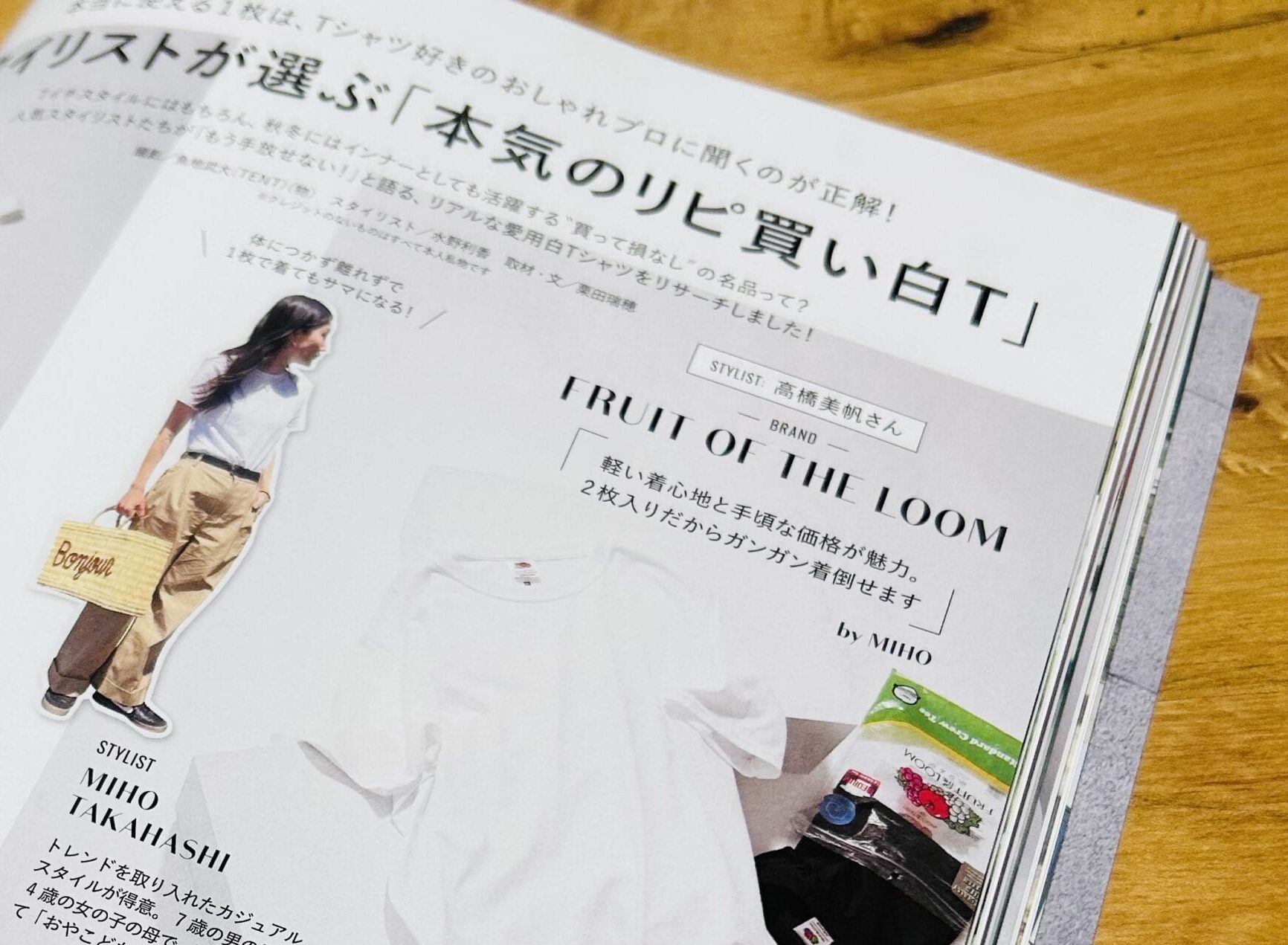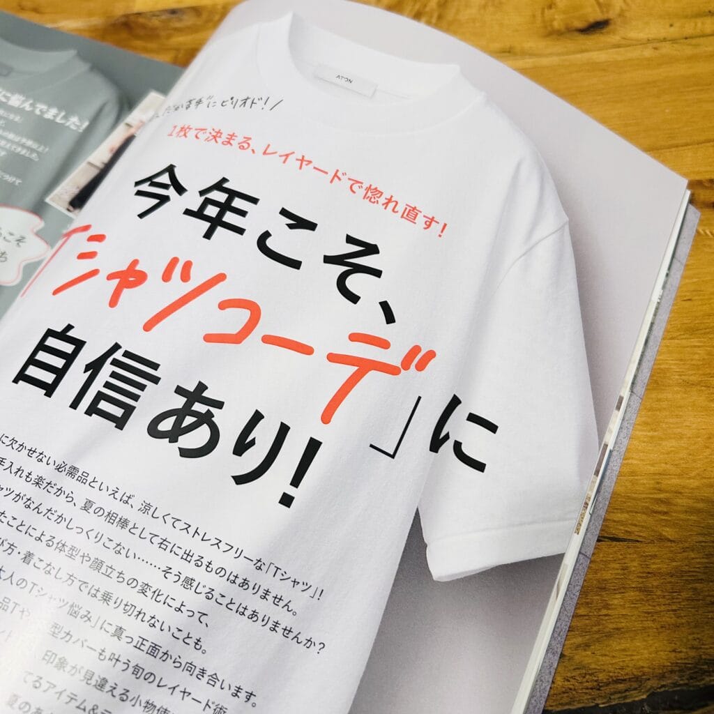 THE SHINZONEやPETIT BATEAUなど、くまおの愛用白Tも掲載されていました。