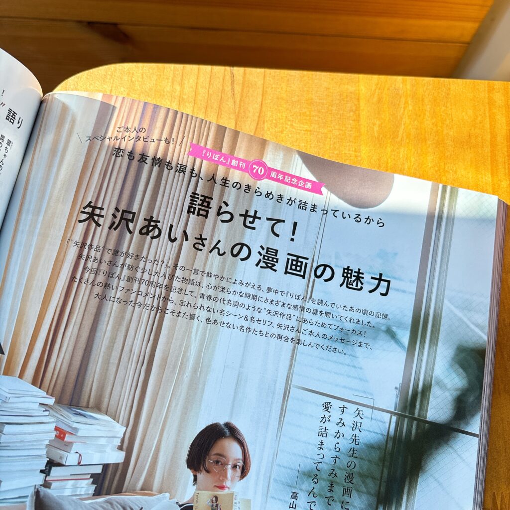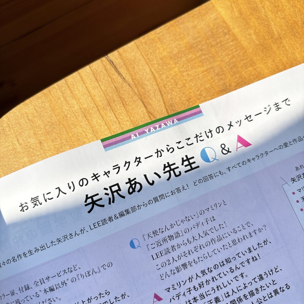 なんと今回は矢沢あい先生ご本人からのQ&Aも!そしてこの誌面のデザインを見てほしい。〝AI YAZAWA〟の部分がりぼん単行本のデザインカラーになってるの🥹🥹🥹これ見てキュンとしたー!