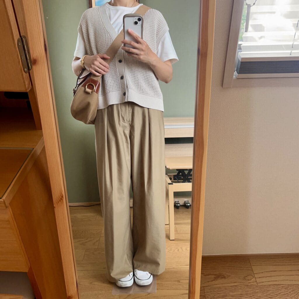 LEE7月号のTシャツ特集で、おすすめ5スタイルの1つとして取り上げられていたレイヤードアイテム。Tシャツ1枚ももちろん素敵ですが、体型カバーや寒暖差対策でもう1枚重ねたほうが安心だし、ちょっとオシャレしてる感じが出る気がします。誌面ではキャミソールやジレ、大きめシアーシャツが紹介されていました。