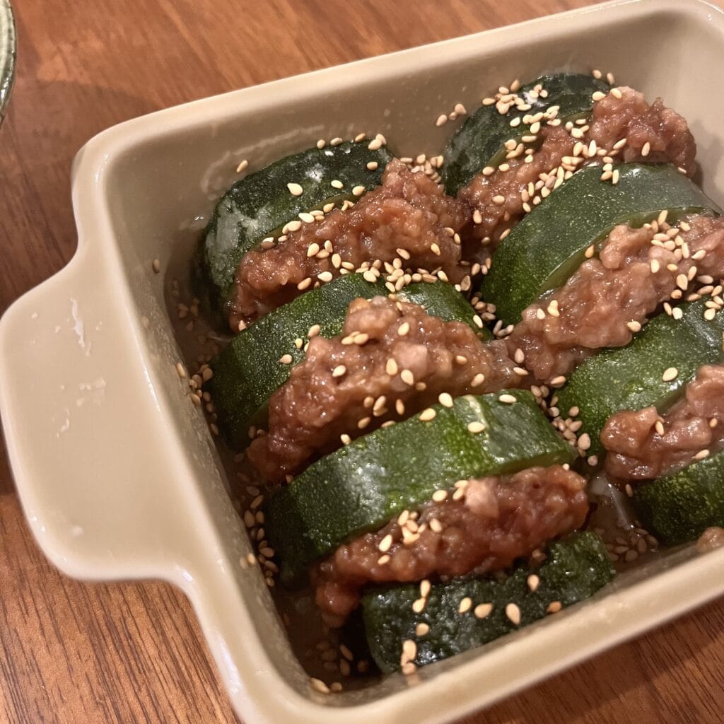 「豚ひき肉、ズッキーニ、かぼちゃの中華風重ね蒸し」レシピ/ワタナベマキさん