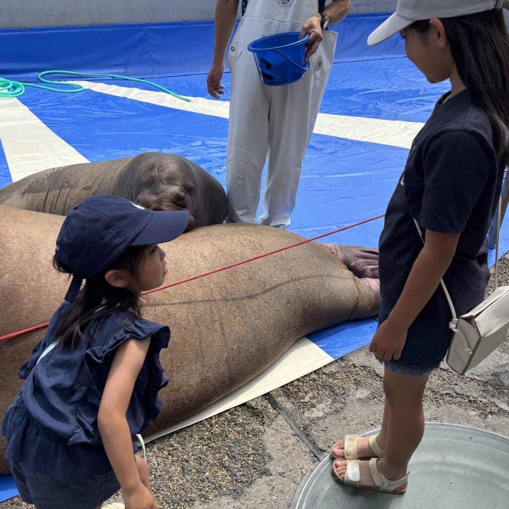 ちょうどショーが終わったタイミングだったらしく、近くで触ることができました。
