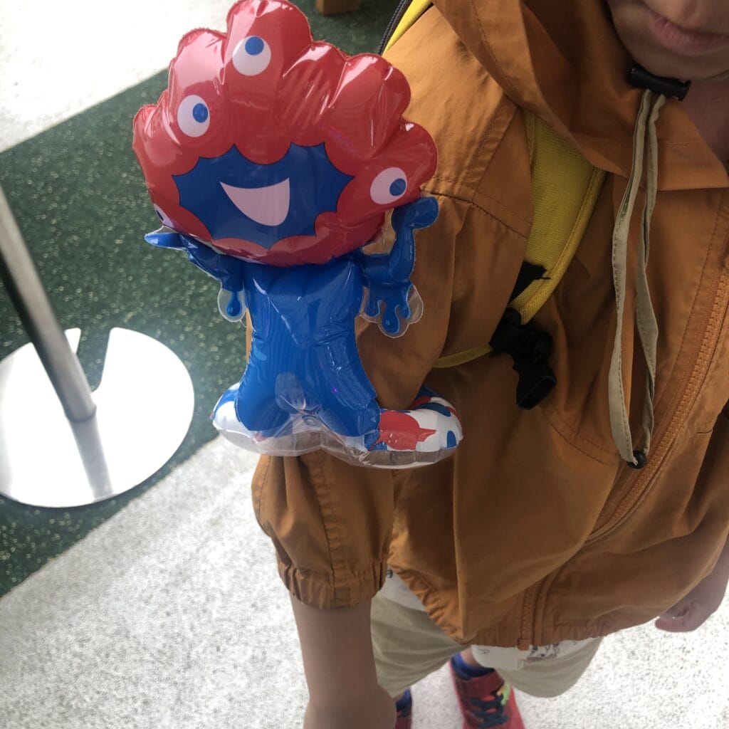 ぬいぐるみ関連は買わなくていいかなぁ(家族全員鼻炎持ち)と思っていたので、息子には扱いやすいミャクミャクバルーンを。