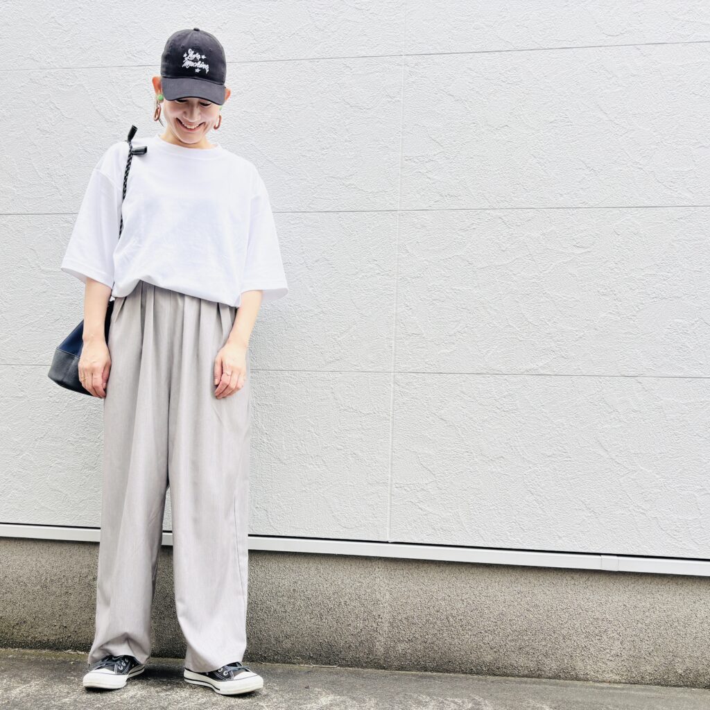綿100%のものよりもシワが気にならず、程よい光沢感のある白なのでオーバーサイズでも程よい上品さが出る気がしてありがたい。