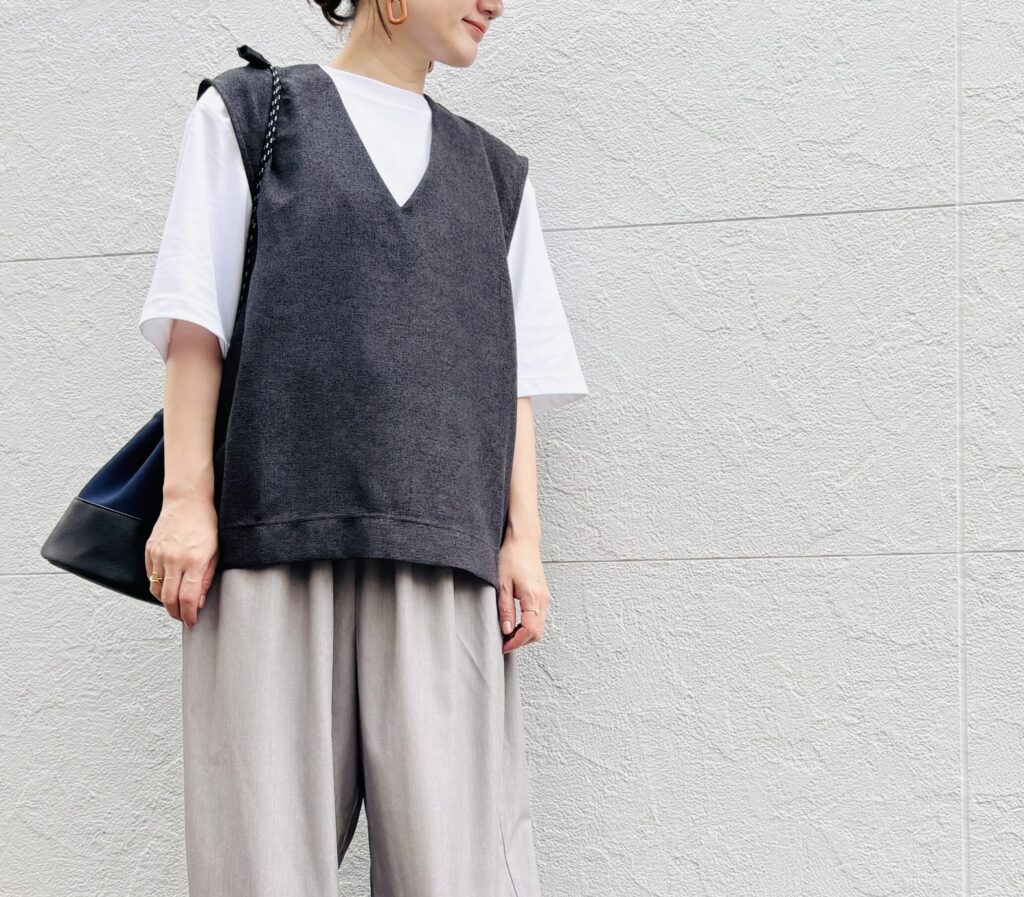 体系カバーしてゆるっと楽したい日にはベストと重ねて。