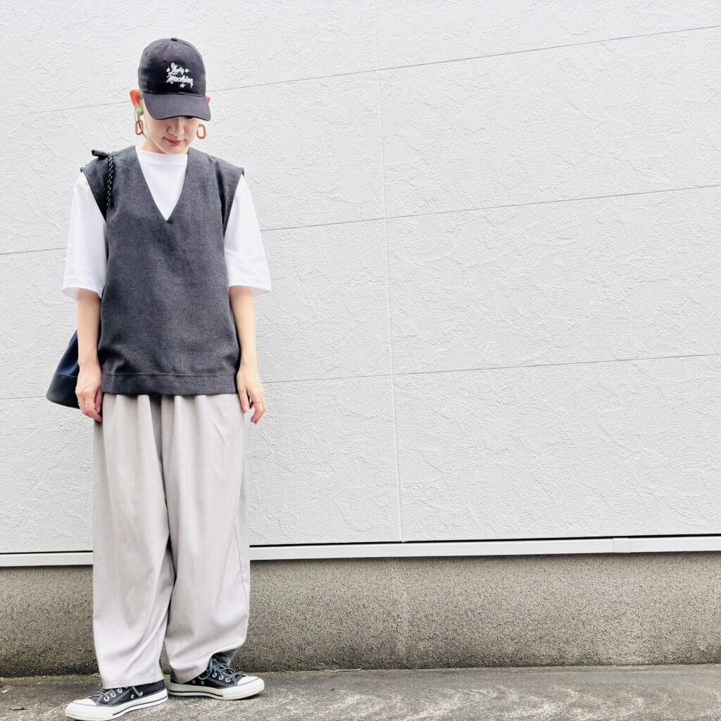 トップ画と全く同じコーデですが、ベスト一つでもまた気分も変わります。