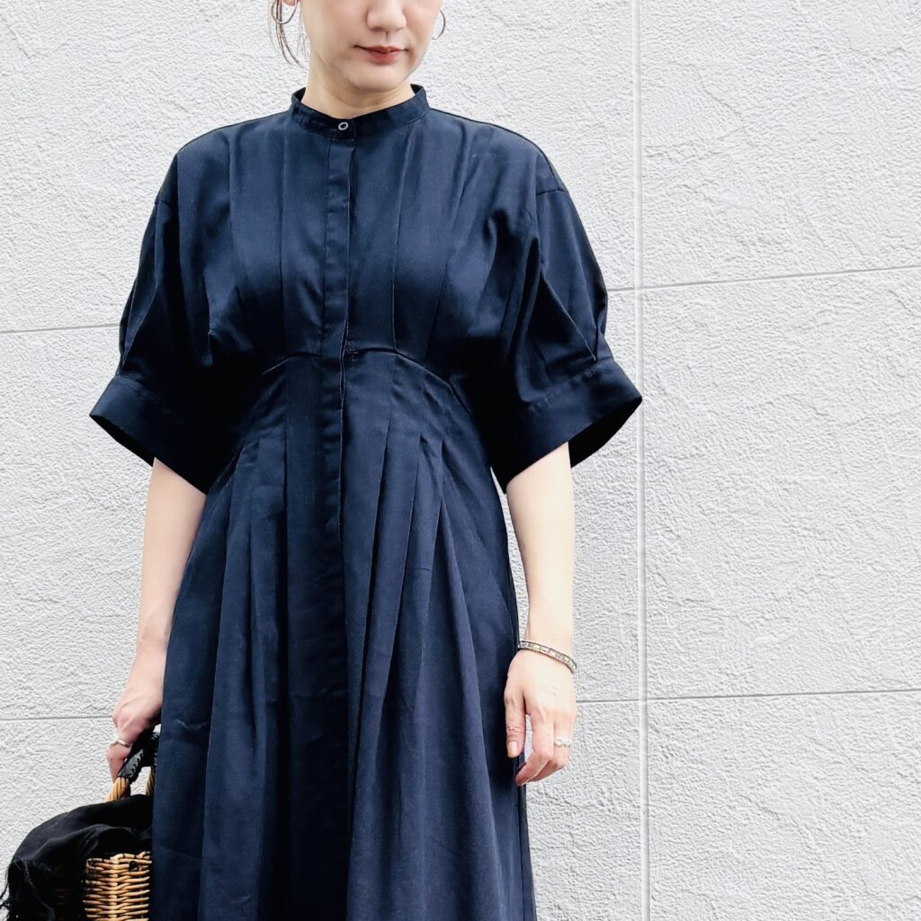 シャツワンピースで襟があると、きっちりしすぎて苦手なのでバンドカラーなのも好みでした。