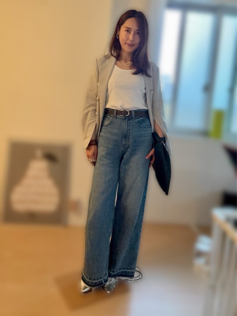 こういうワイドデニムは長めずるずるではくのが可愛いし、汚れても手洗い可能なので、雨の日ではなく晴れた日に活用することにします笑