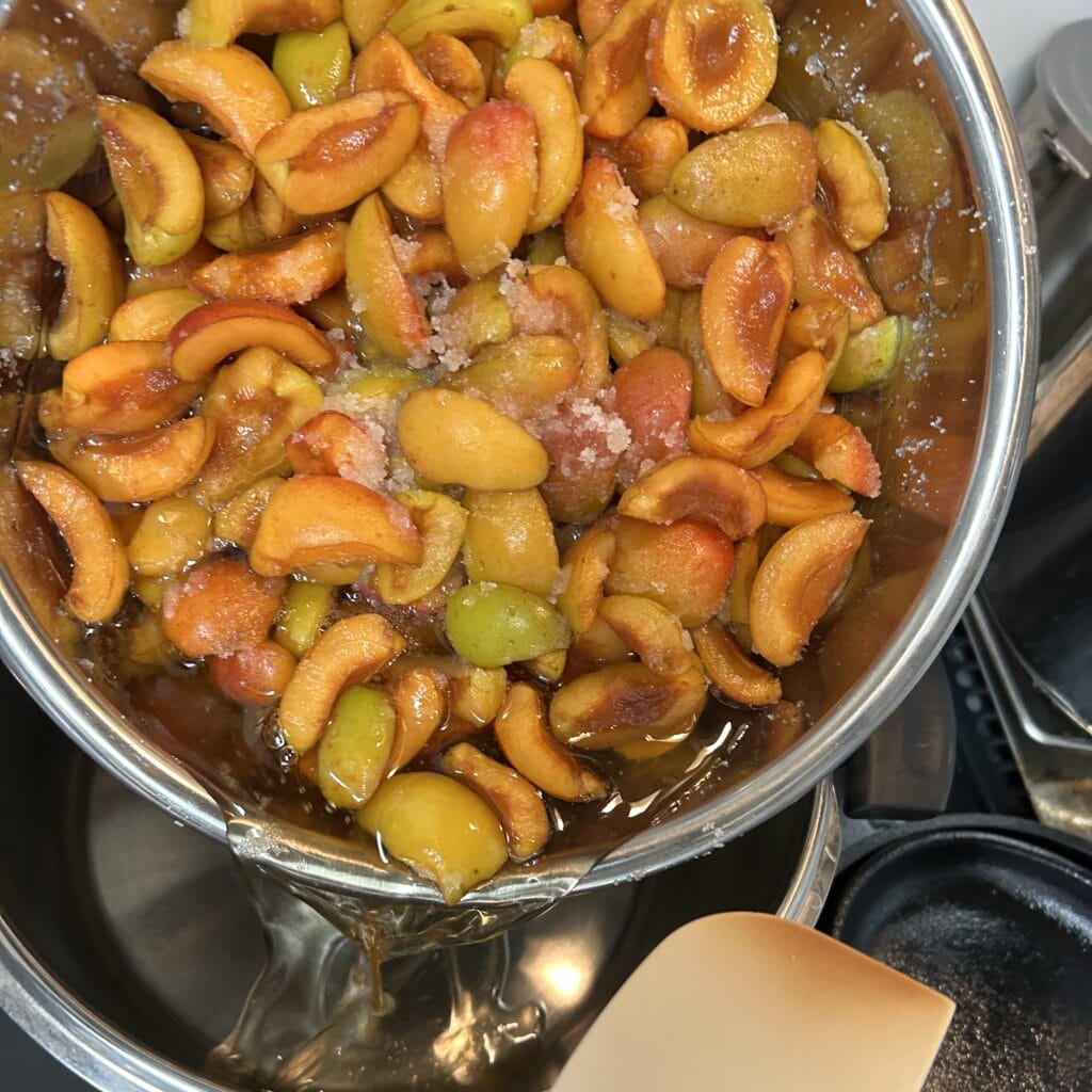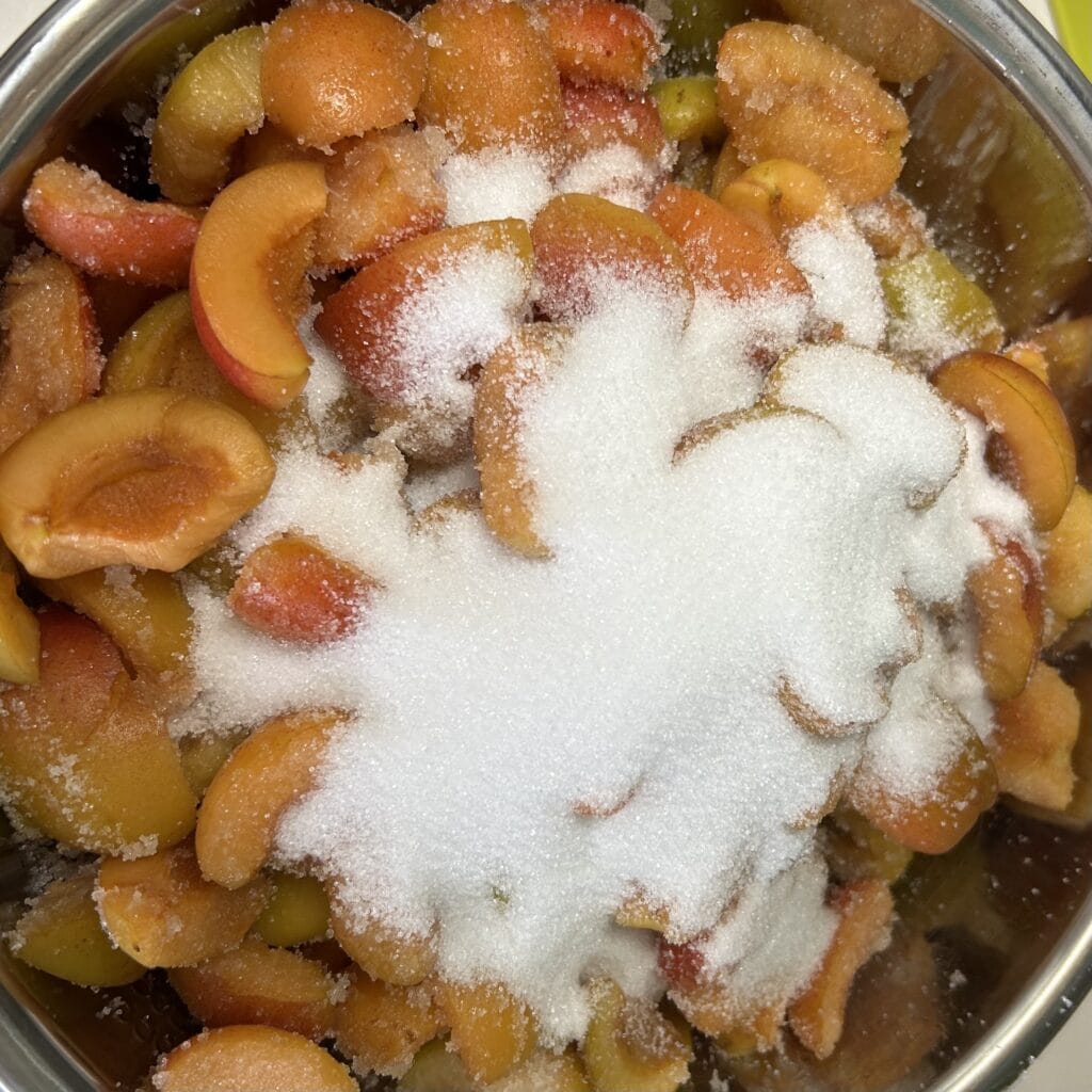 (あんず1300gに対して、グラニュー糖500gを入れました。お好みに合わせて^ ^)