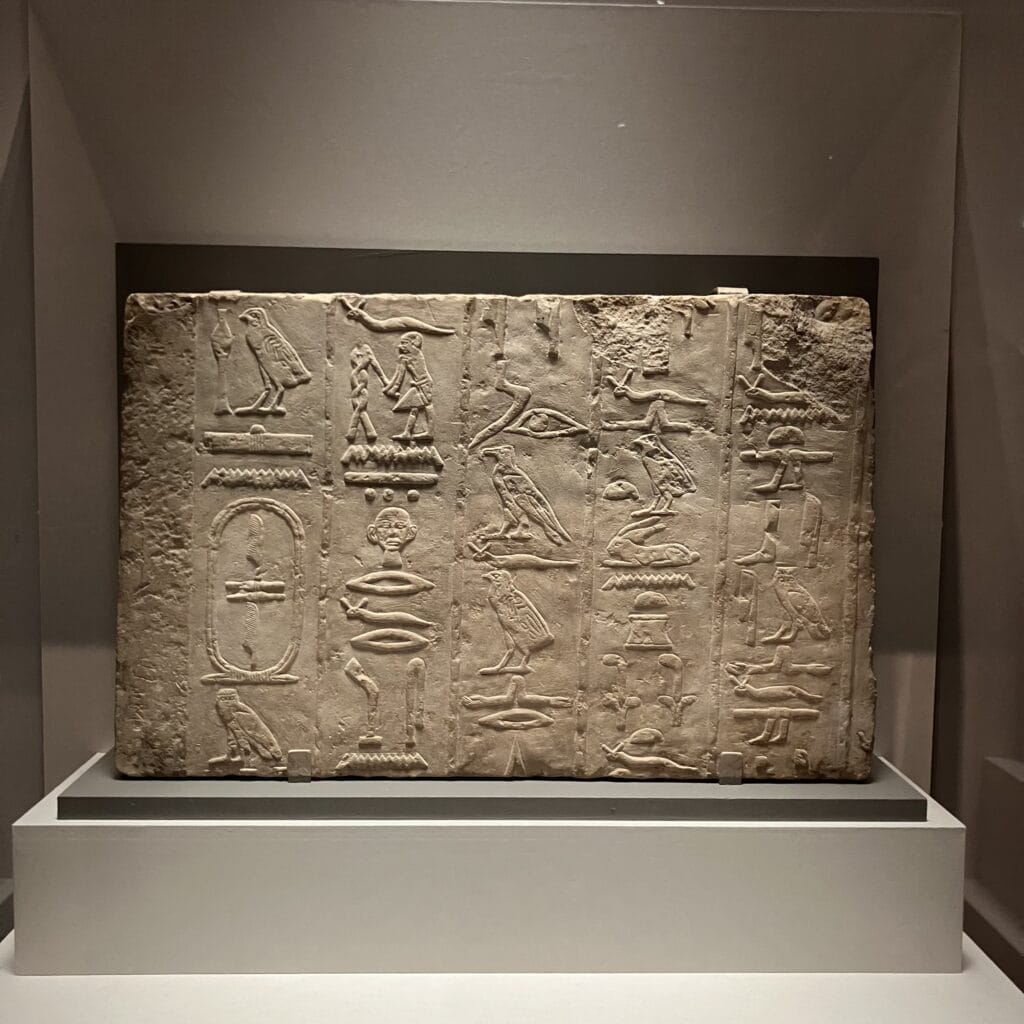 たくさんの石板が展示され、色々な大きさのヒエログリフ(古代エジプトの象形文字)が並んでいました。テレビや教科書の中でしか見たことのなかったものが目の前にあることの感動と、3000年前に生きていた人たちも同じように”文字”を使って今起きているものやことを後世に伝えようとしていたことにも感動!