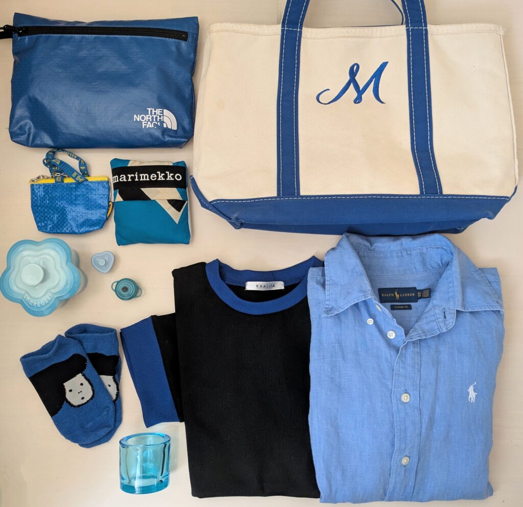 100人隊のみなさん所有率高めのL.L.Beanのトートからラルフのシャツに靴下まで、わが家のブルーアイテムを集めてみました
