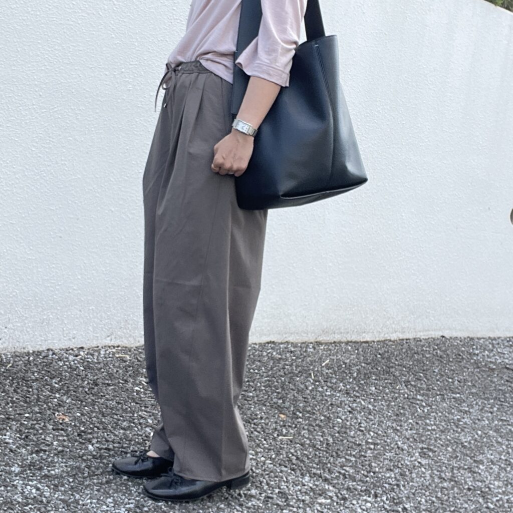 ラフなパンツだけど、きれい目にも見えるので通勤コーデにも良いです。