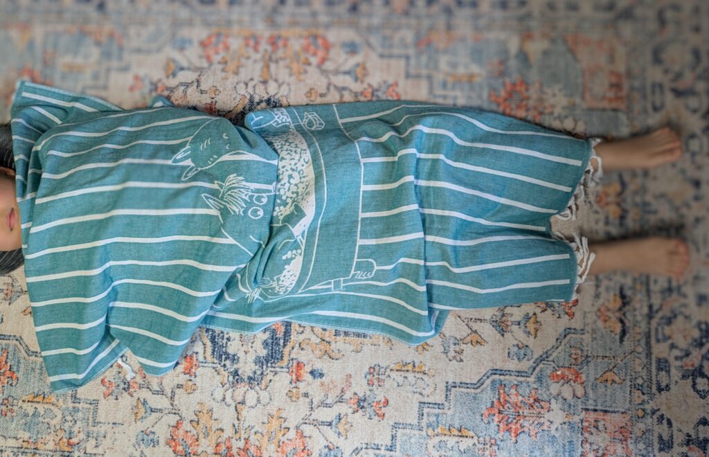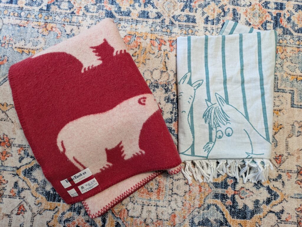 アウトレットでは大好きなキャラクタームーミンのブランケットも購入しました