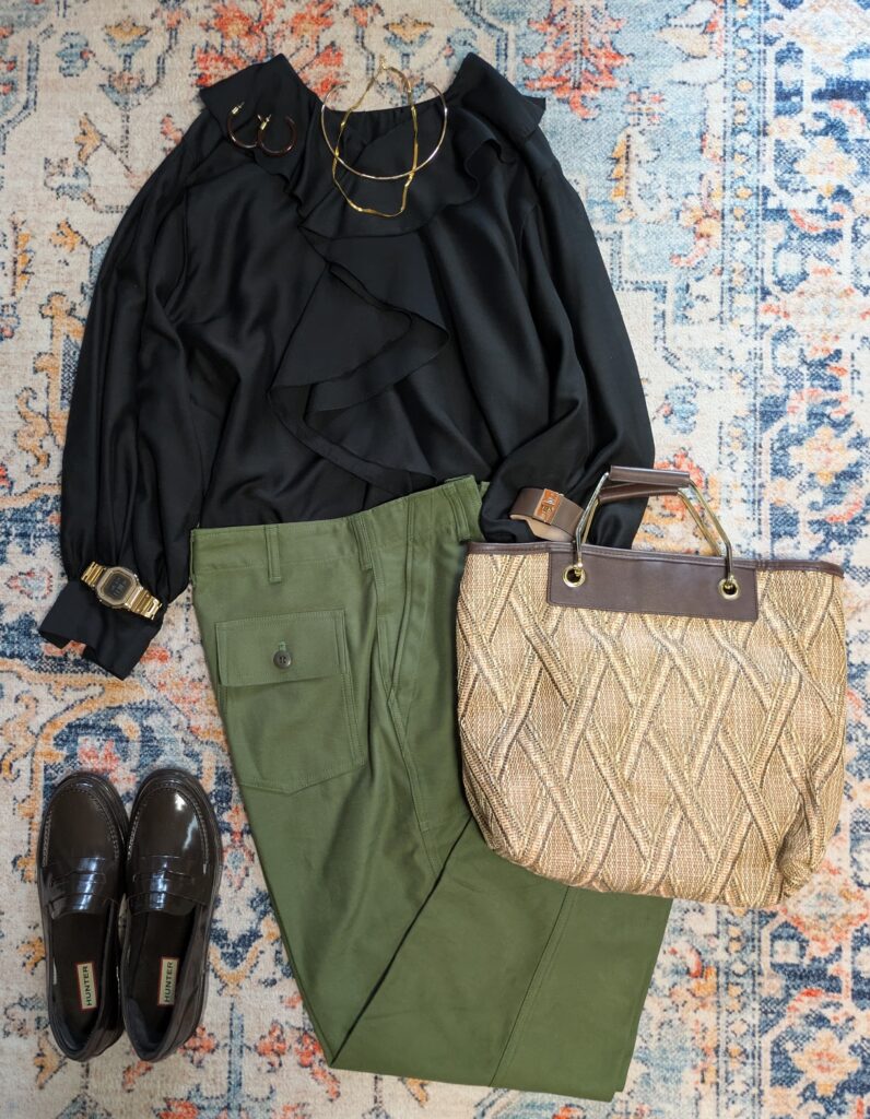 シアー素材のフリルブラウスを、色んな割引が適用されて2000円ほどで購入しました😳