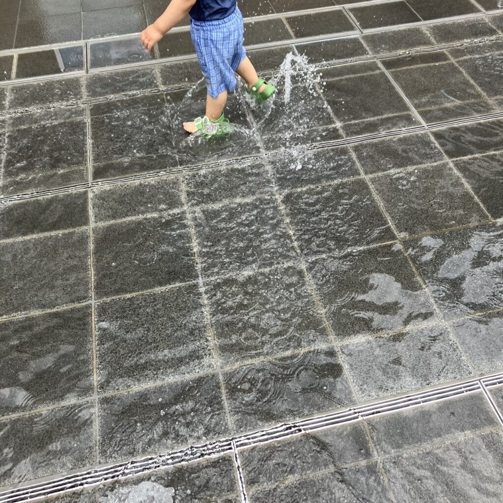 ちょっとした噴水や川、水遊びスポットが周りに多くあり嬉しい反面、見つけると構わず走り出し、飛び込む息子。